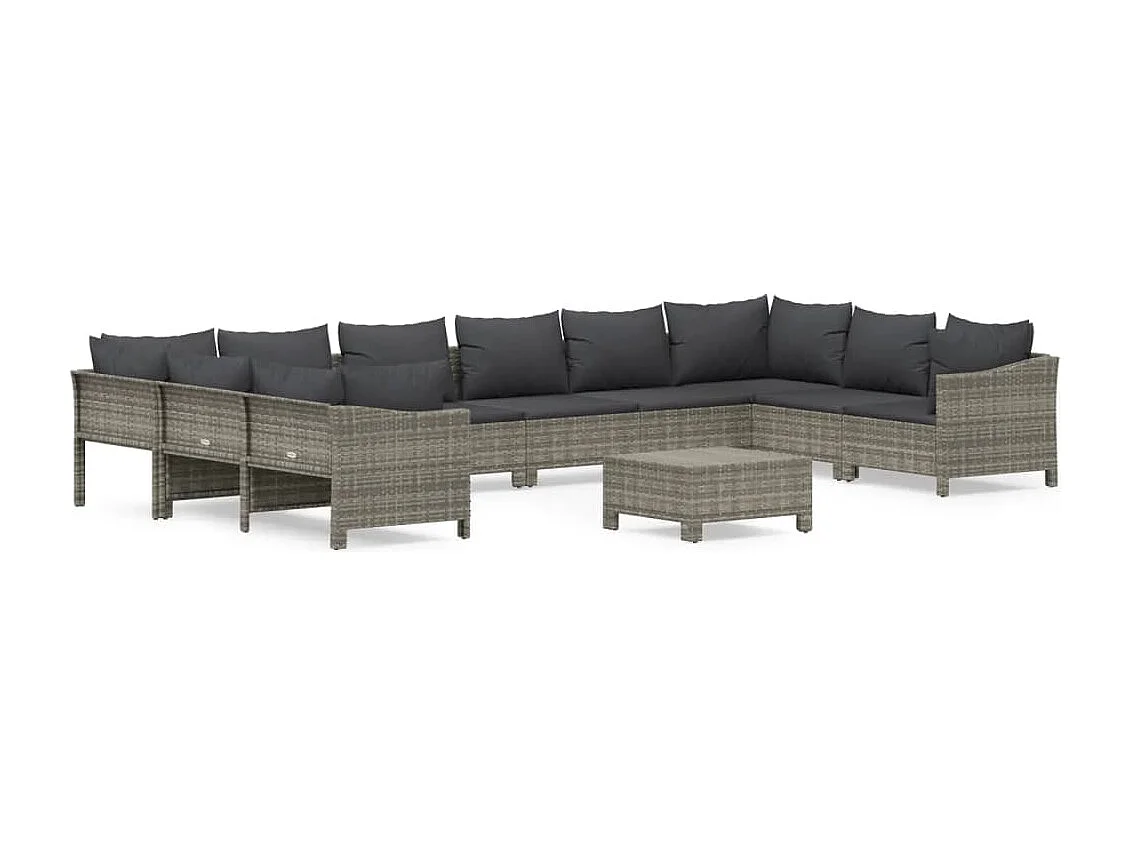 Salon de jardin 11 pcs avec coussins Gris Résine tressée