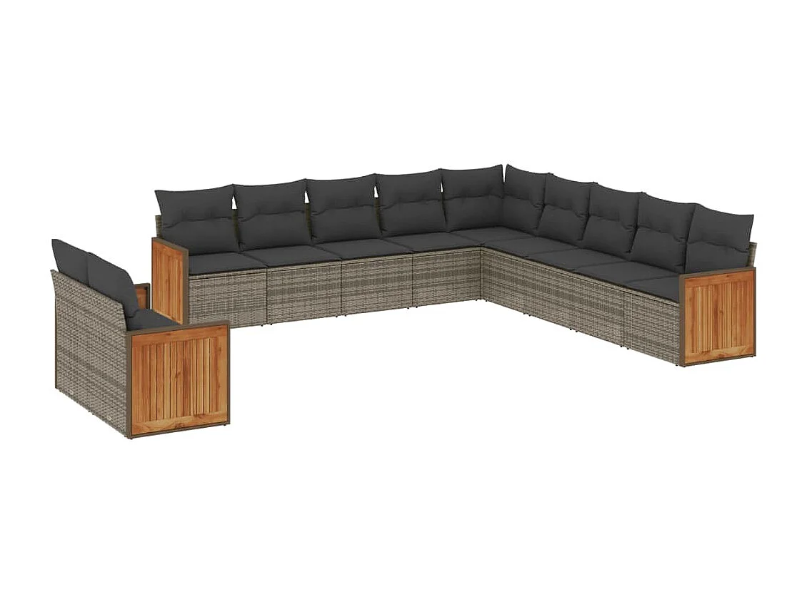 Salon de jardin 11 pcs avec coussins gris résine tressée