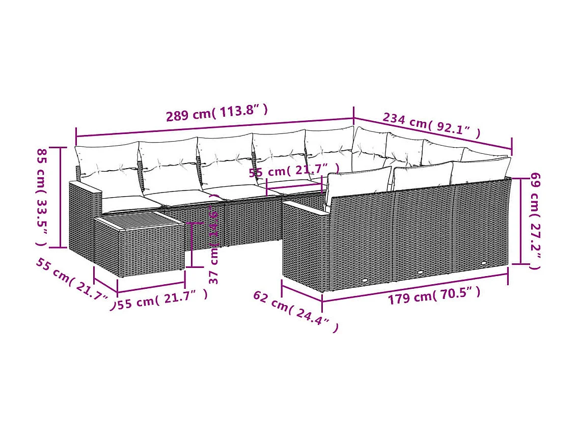 Salon de jardin 11 pcs avec coussins gris résine tressée