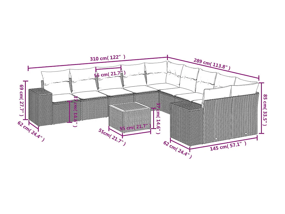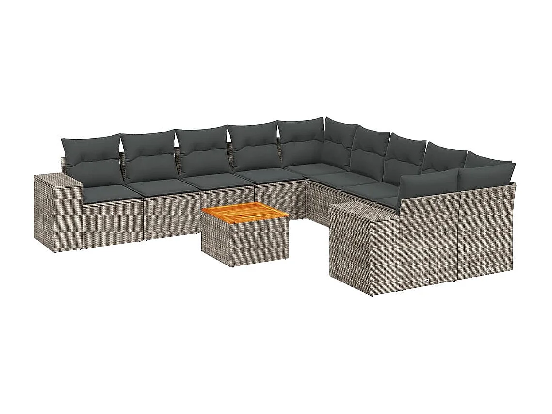Salon de jardin 11 pcs avec coussins gris résine tressée