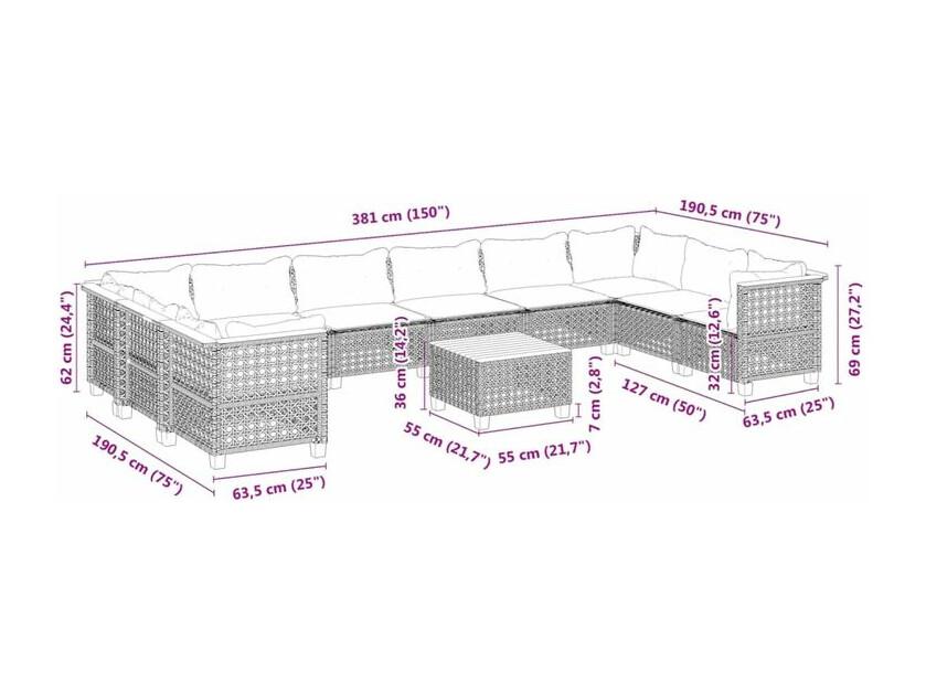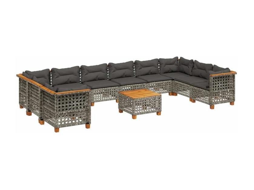 Salon de jardin 11 pcs avec coussins gris résine tressée