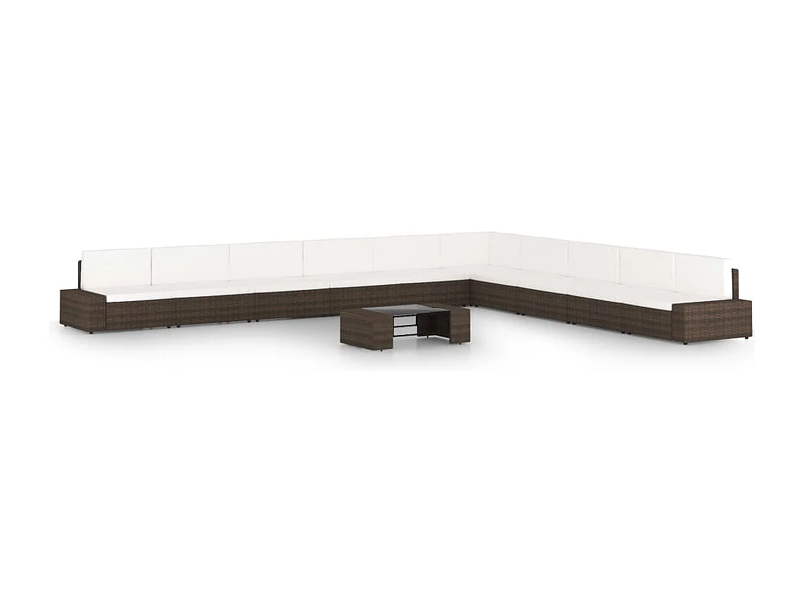 Salon de jardin 11 pcs avec coussins Marron Résine tressée 12