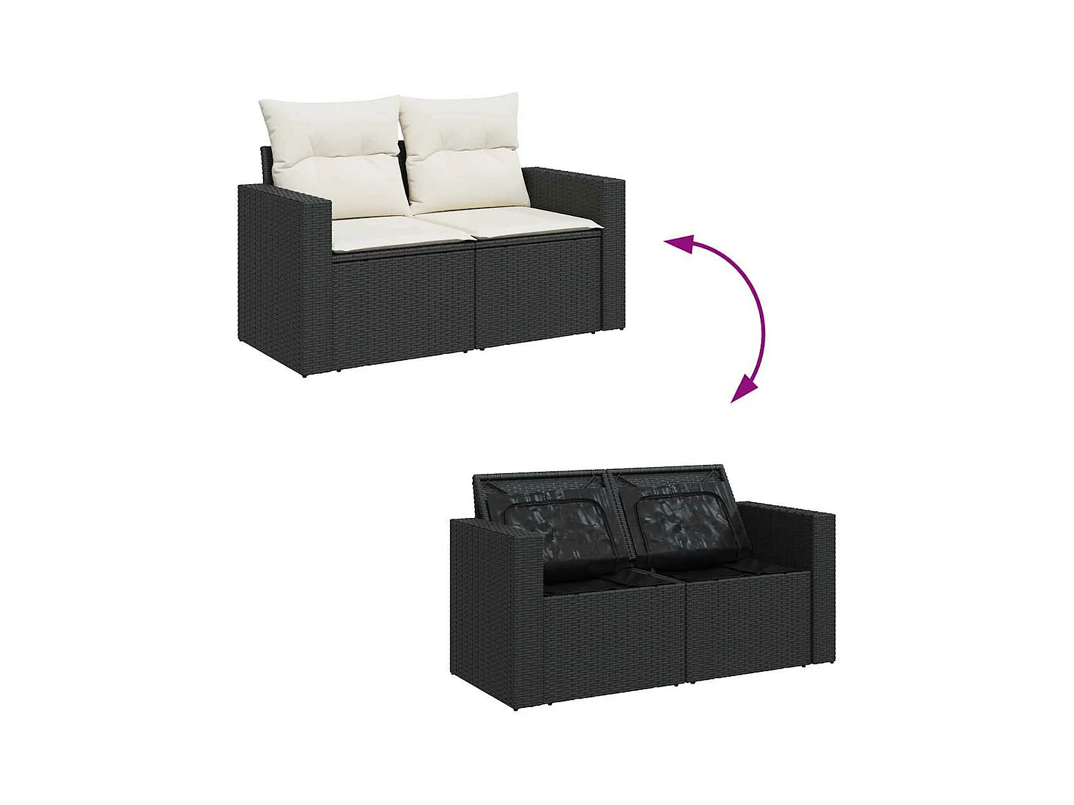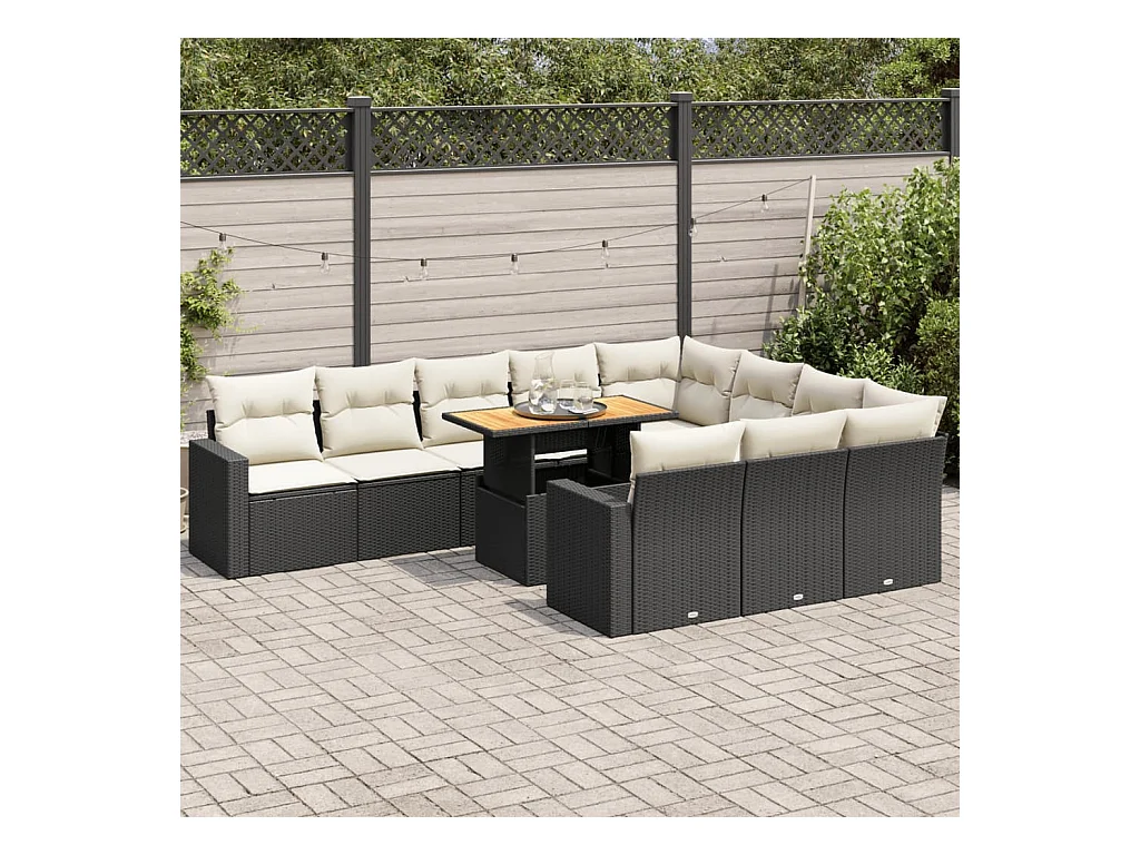 Salon de jardin 11 pcs avec coussins noir résine tressée