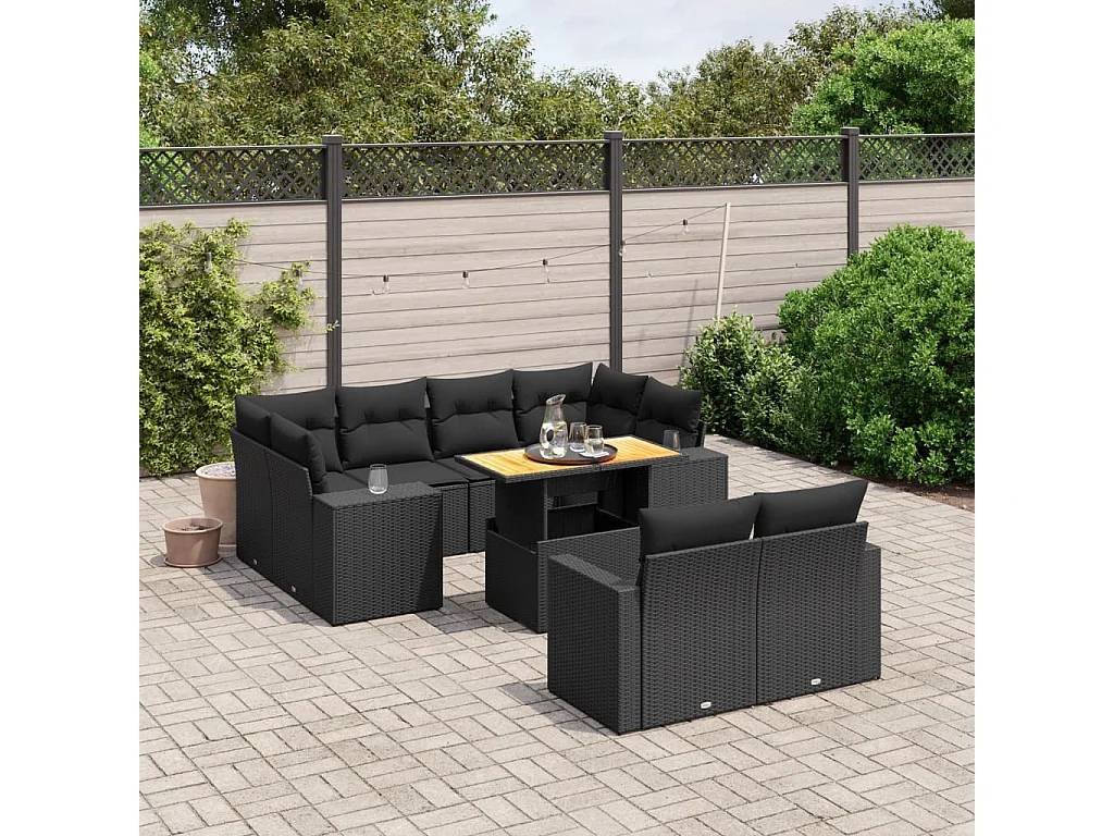 Salon de jardin 11 pcs avec coussins noir résine tressée