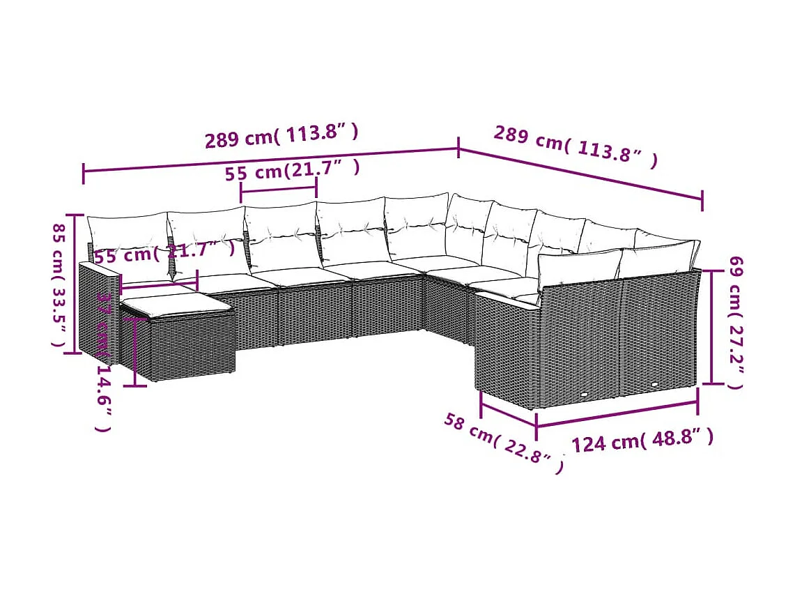Salon de jardin 11 pcs avec coussins noir résine tressée