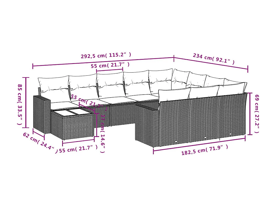 Salon de jardin 11 pcs avec coussins noir résine tressée