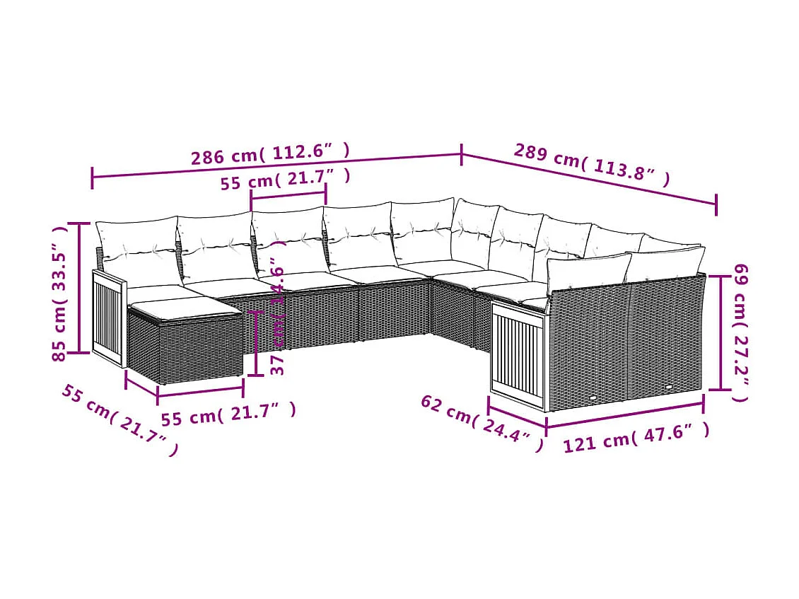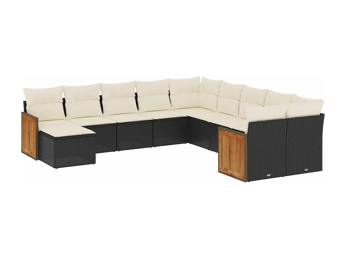 Salon de jardin 11 pcs avec coussins noir résine tressée