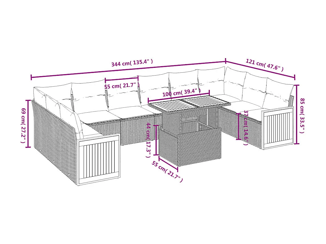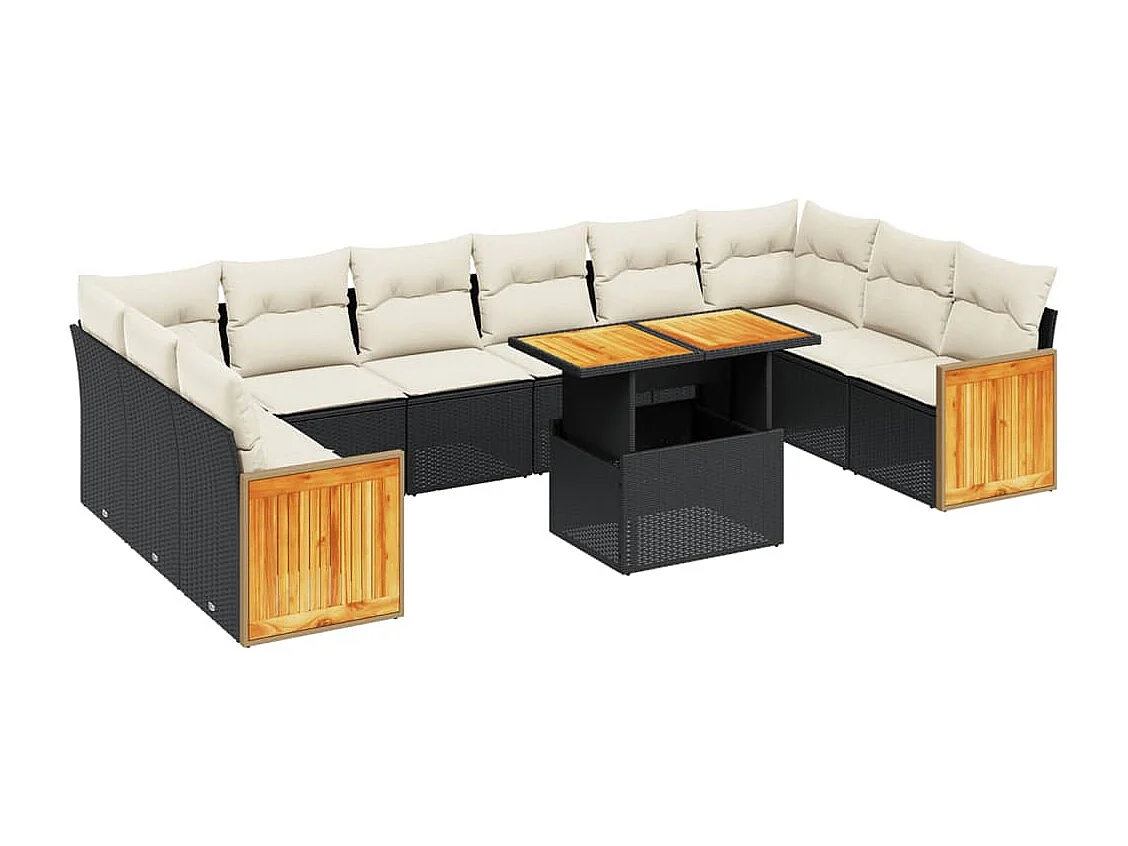 Salon de jardin 11 pcs avec coussins noir résine tressée