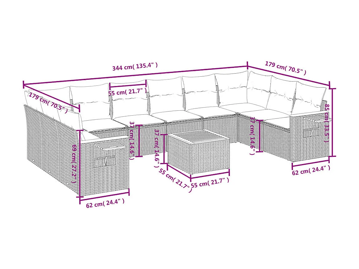 Salon de jardin 11 pcs avec coussins noir résine tressée