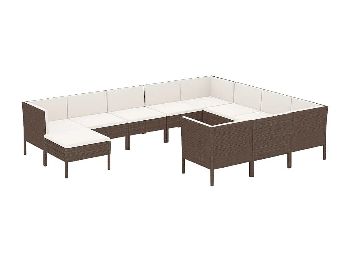 Salon de jardin 11 pcs avec coussins Résine tressée Marron