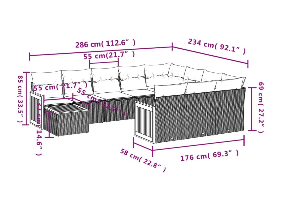 Salon de jardin 11 pièces avec coussins beige résine tressée
