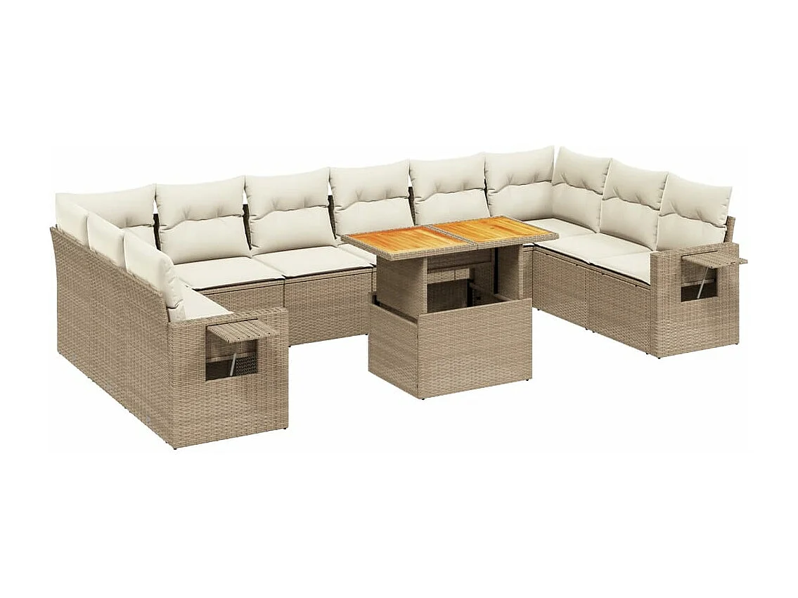 Salon de jardin 11 pièces avec coussins beige résine tressée