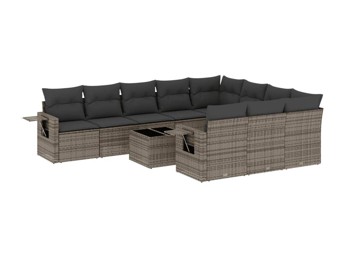 Salon de jardin 11 pièces avec coussins gris résine tressée