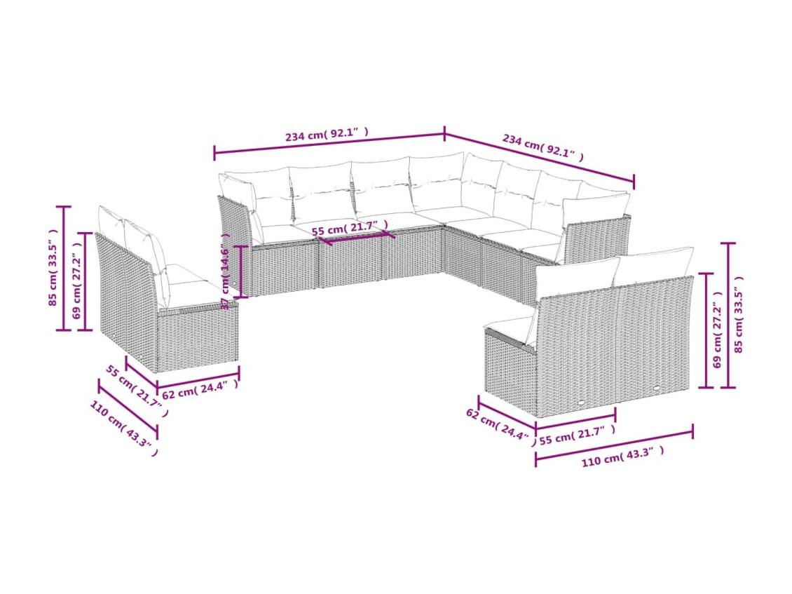 Salon de jardin 11 pièces avec coussins noir résine tressée