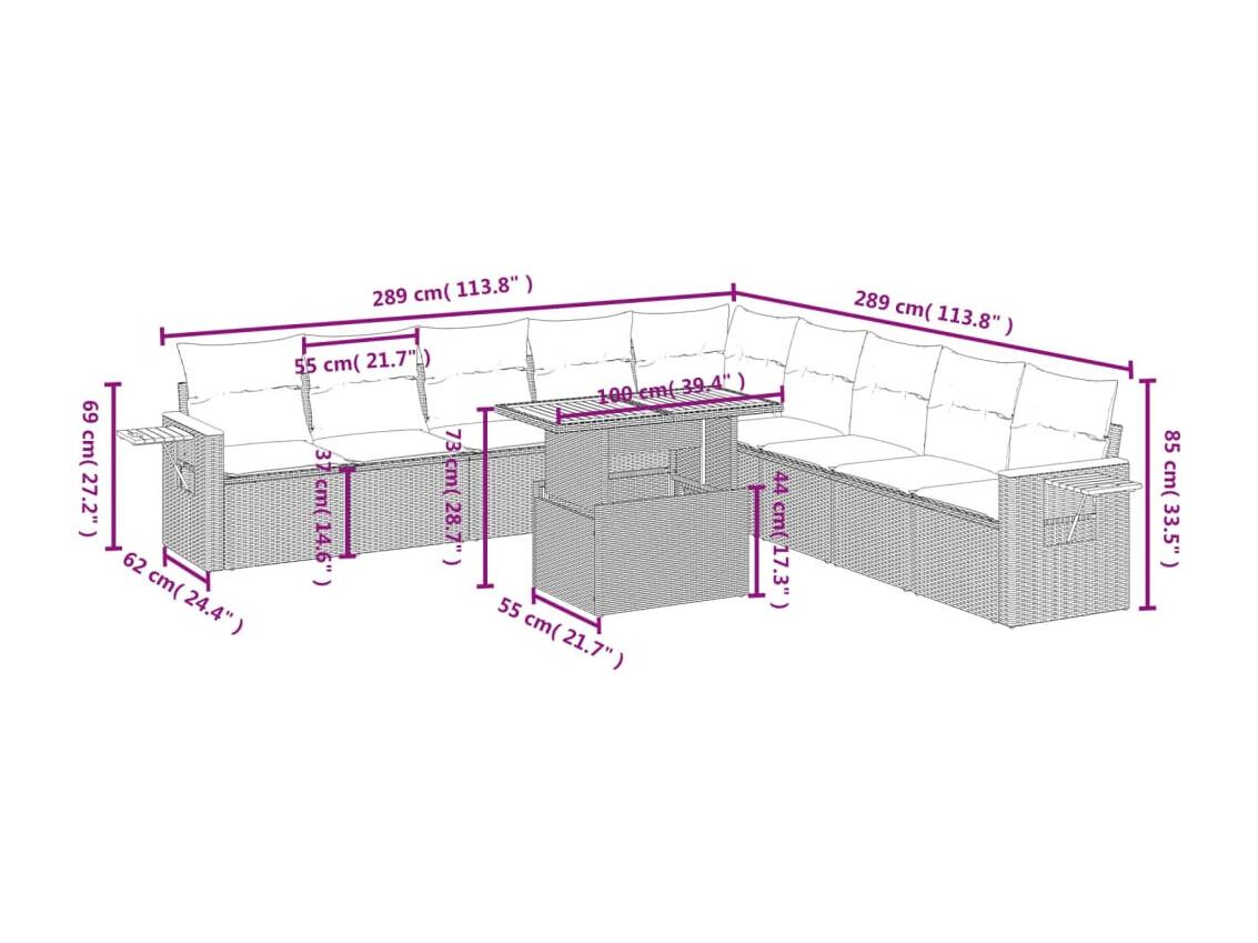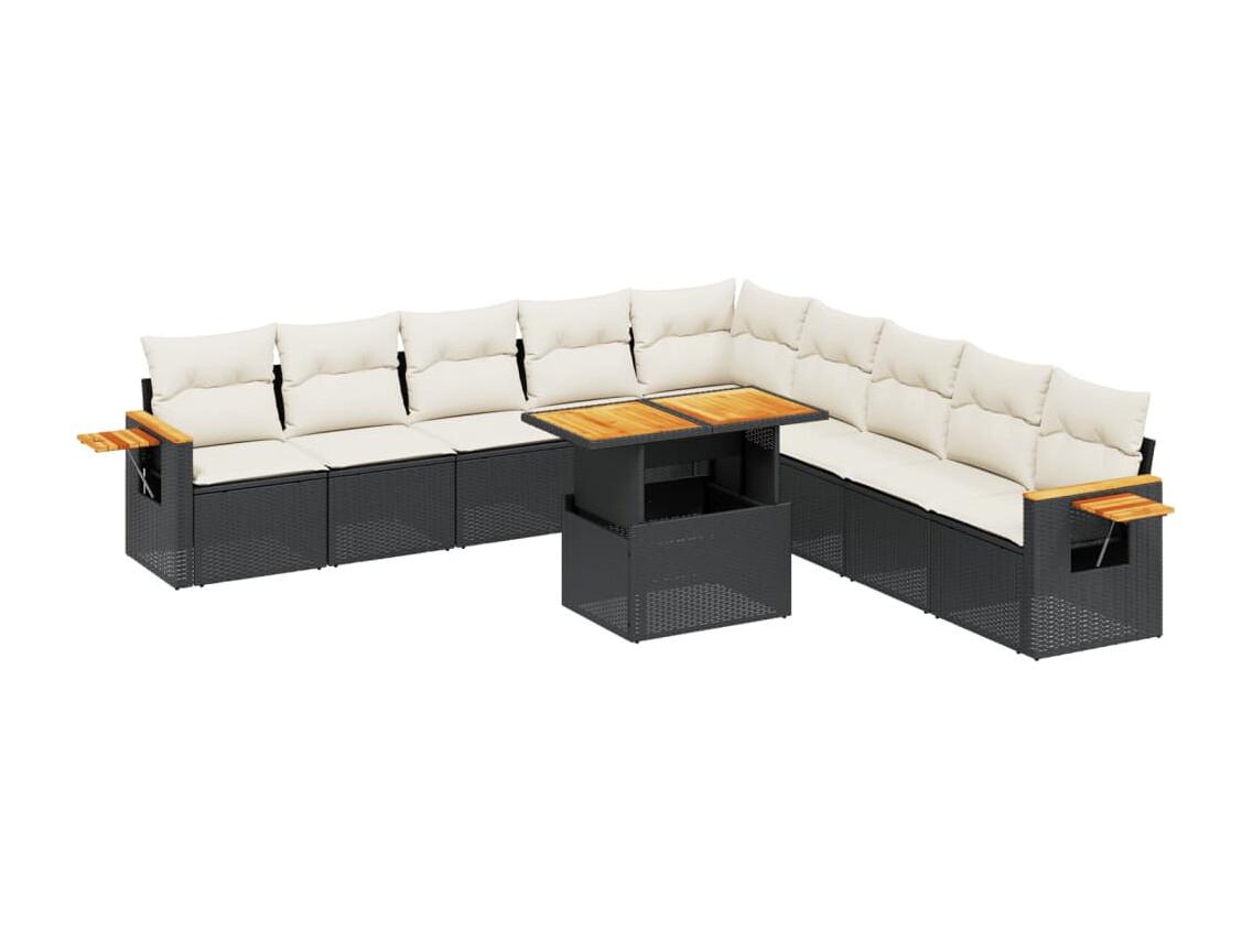 Salon de jardin 11 pièces avec coussins noir résine tressée