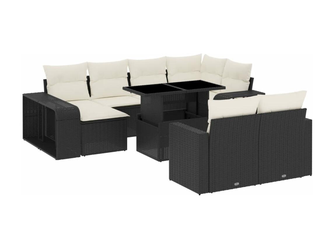 Salon de jardin 11 pièces avec coussins noir résine tressée