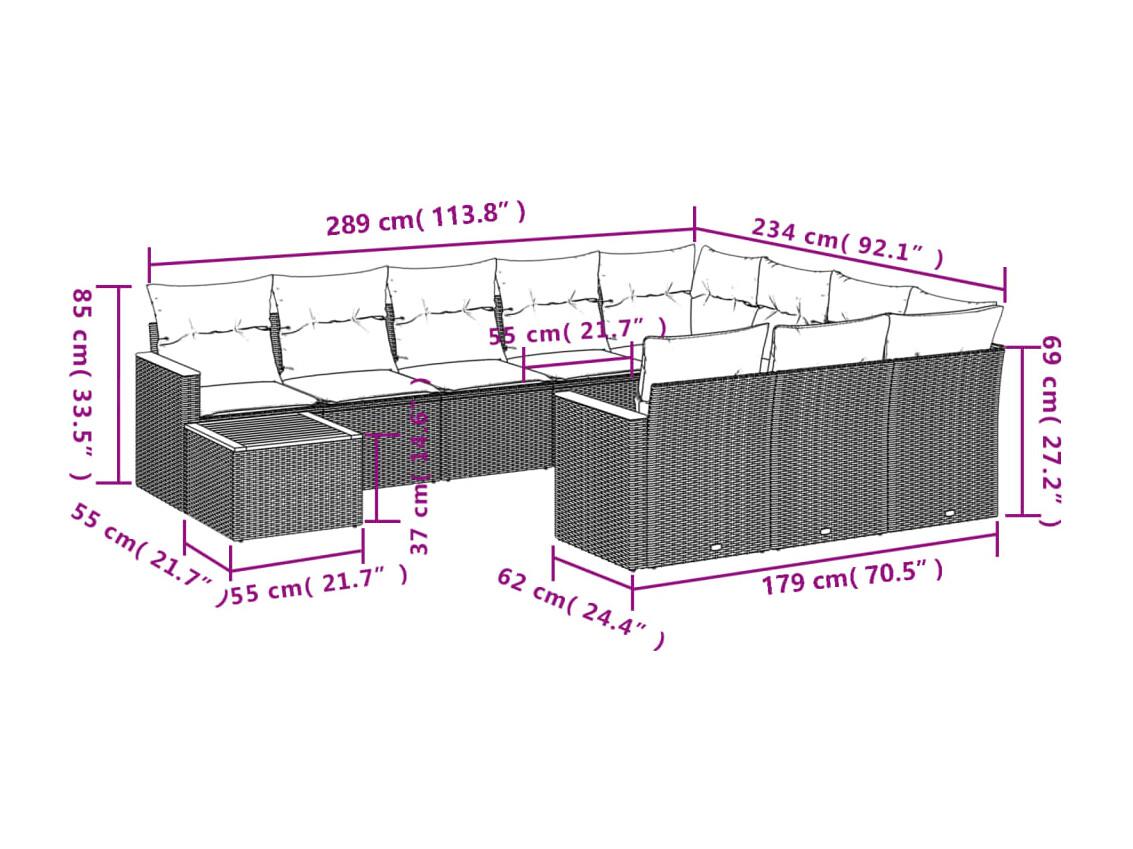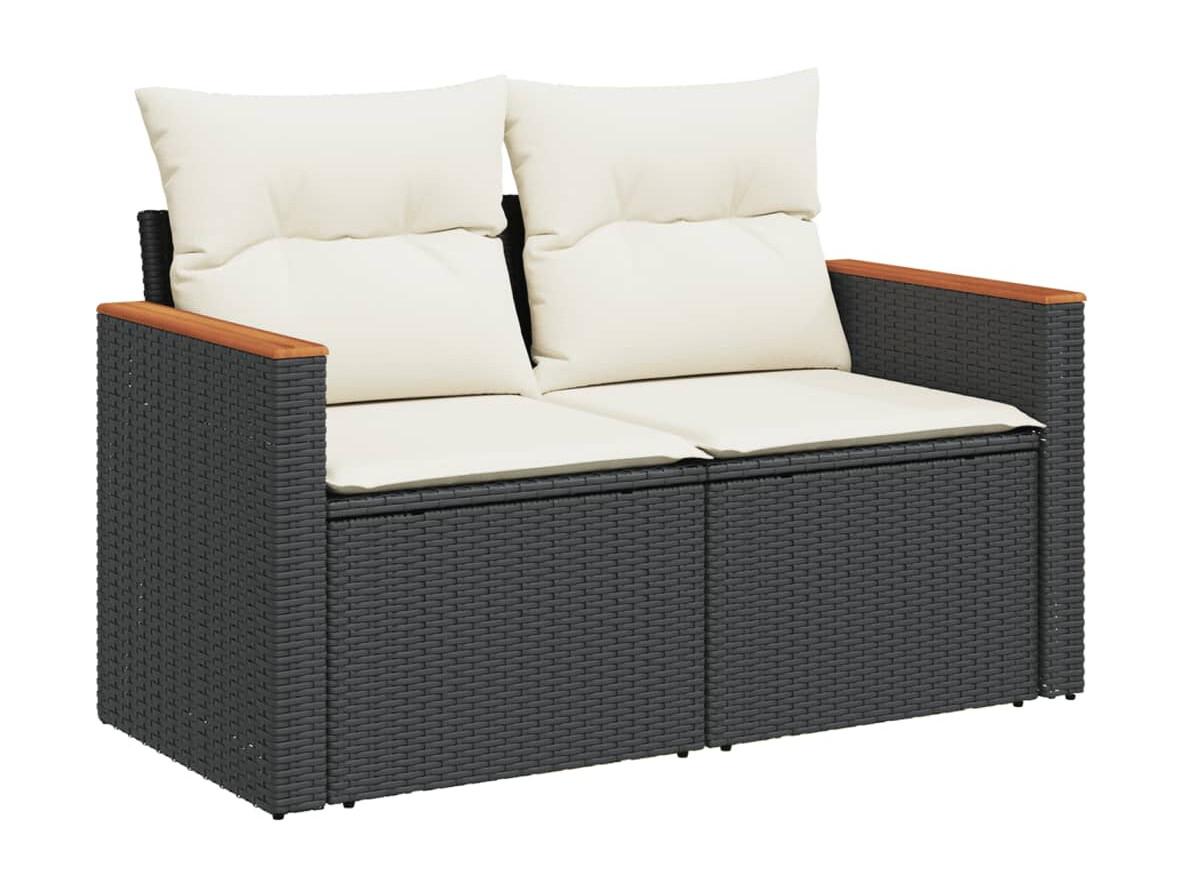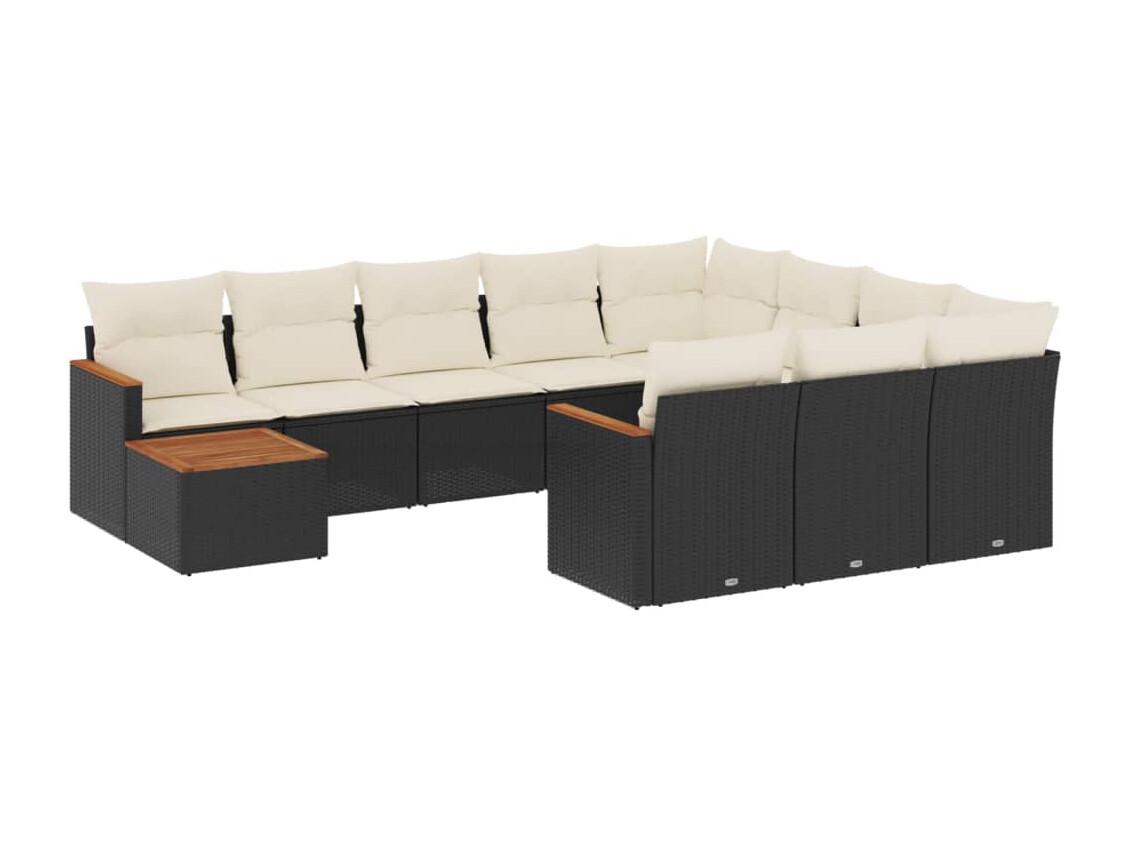 Salon de jardin 11 pièces avec coussins noir résine tressée