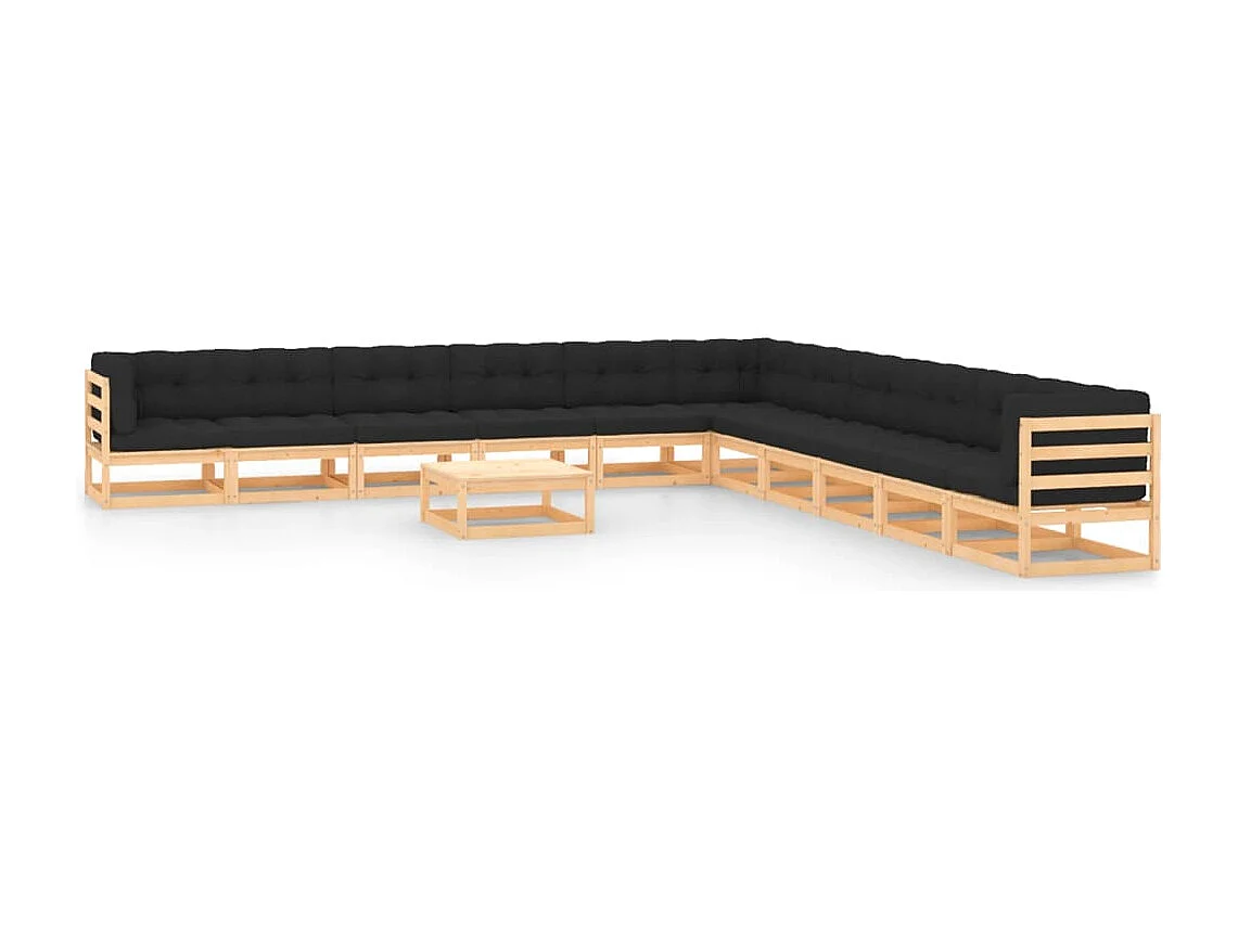 Salon de jardin 12 pcs avec coussins anthracite Pin massif
