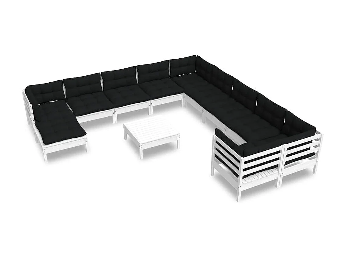 Salon de jardin 12 pcs avec coussins Blanc Bois de pin