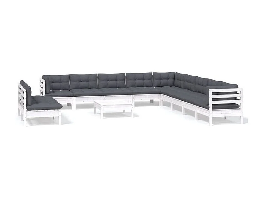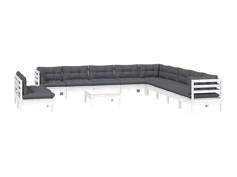 Salon de jardin 12 pcs avec coussins blanc bois de pin solide