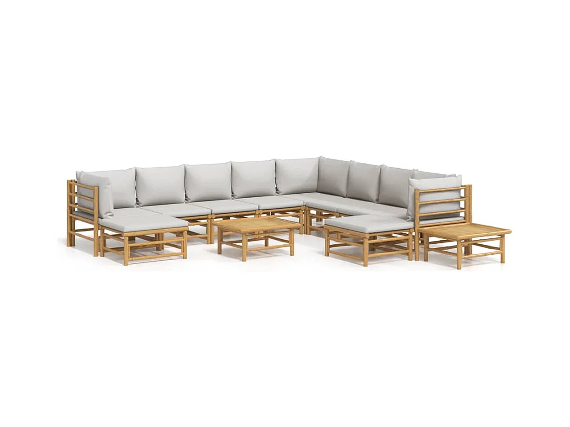 Salon de jardin 12 pcs avec coussins gris clair bambou