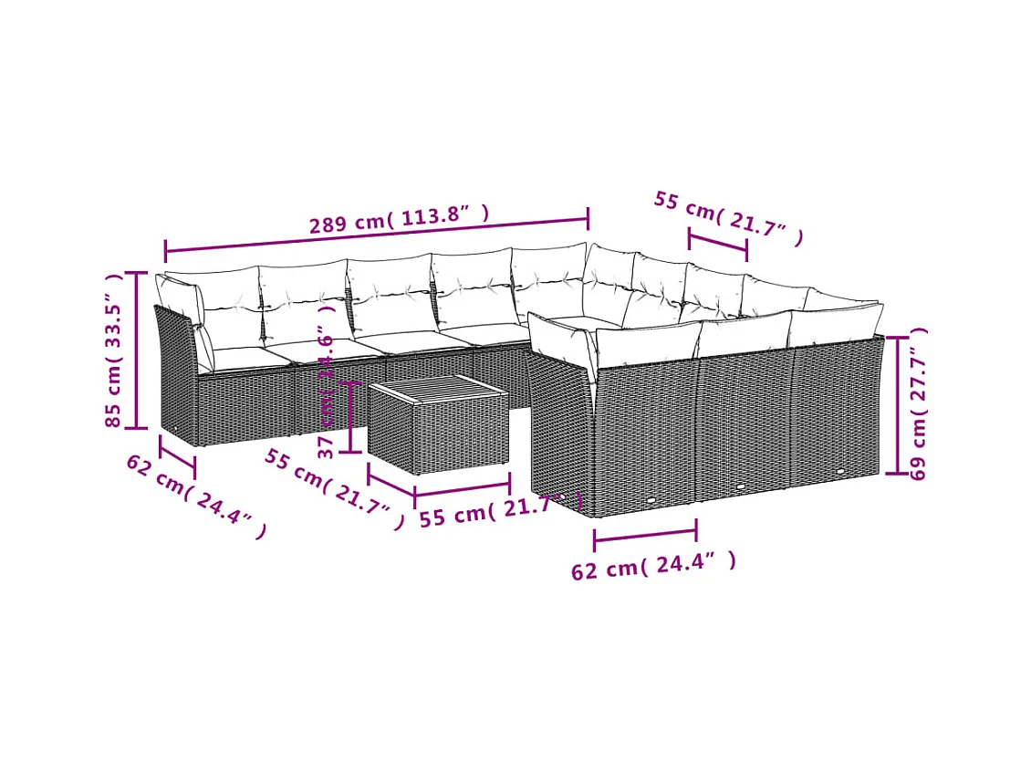 Salon de jardin 12 pcs avec coussins noir résine tressée