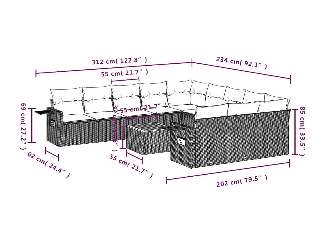 Salon de jardin 12 pcs avec coussins noir résine tressée