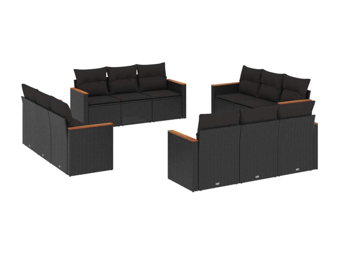 Salon de jardin 12 pcs avec coussins noir résine tressée