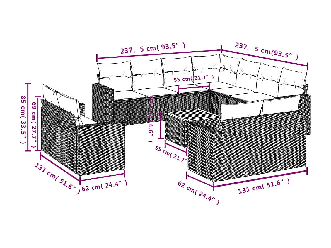 Salon de jardin 12 pcs avec coussins noir résine tressée