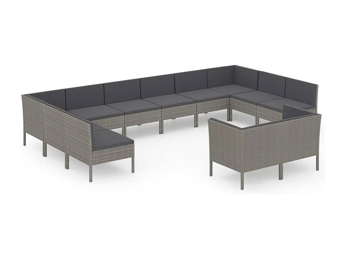 Salon de jardin 12 pcs avec coussins Résine tressée Gris 17