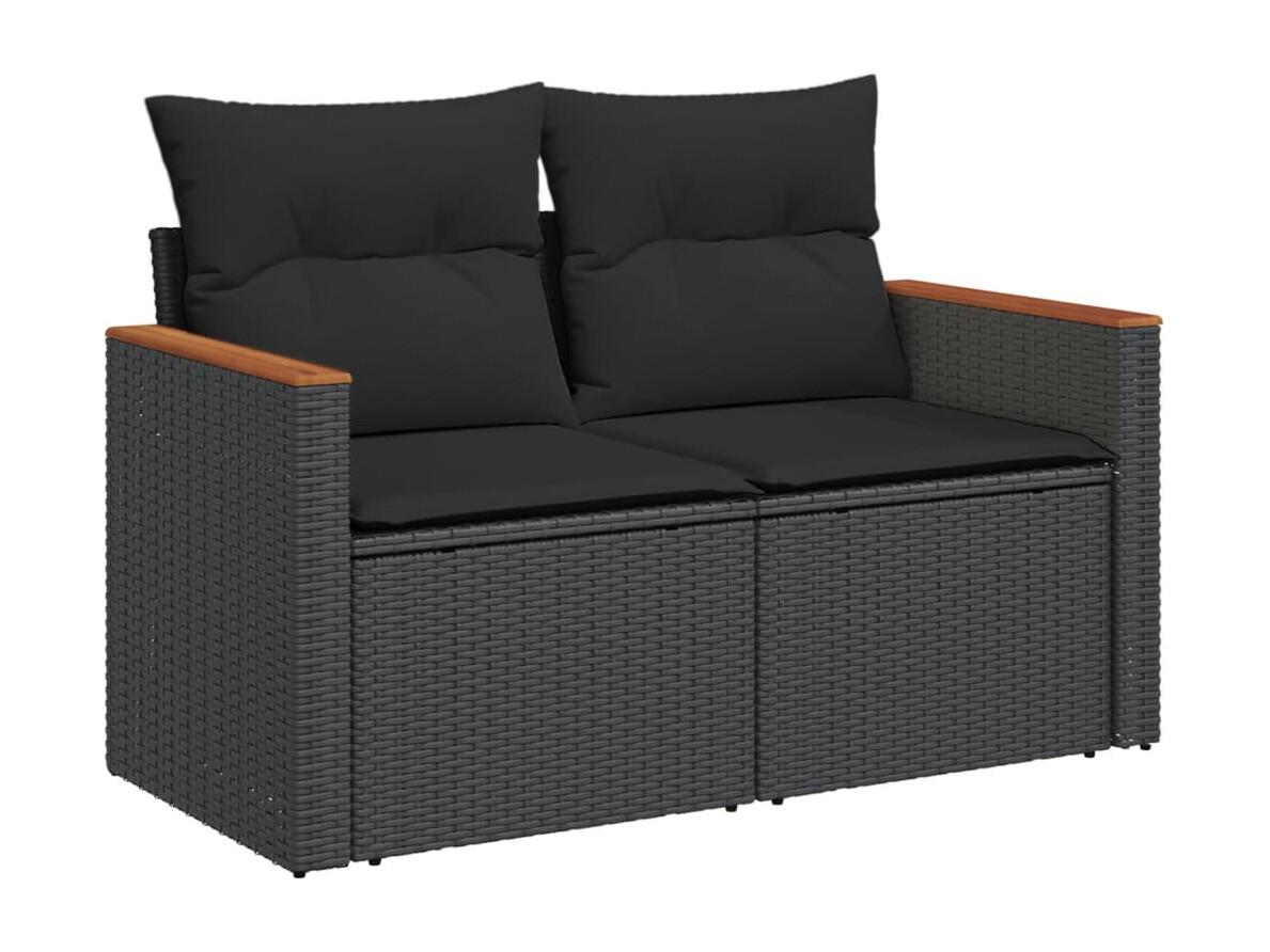 Salon de jardin 12 pièces avec coussins noir résine tressée
