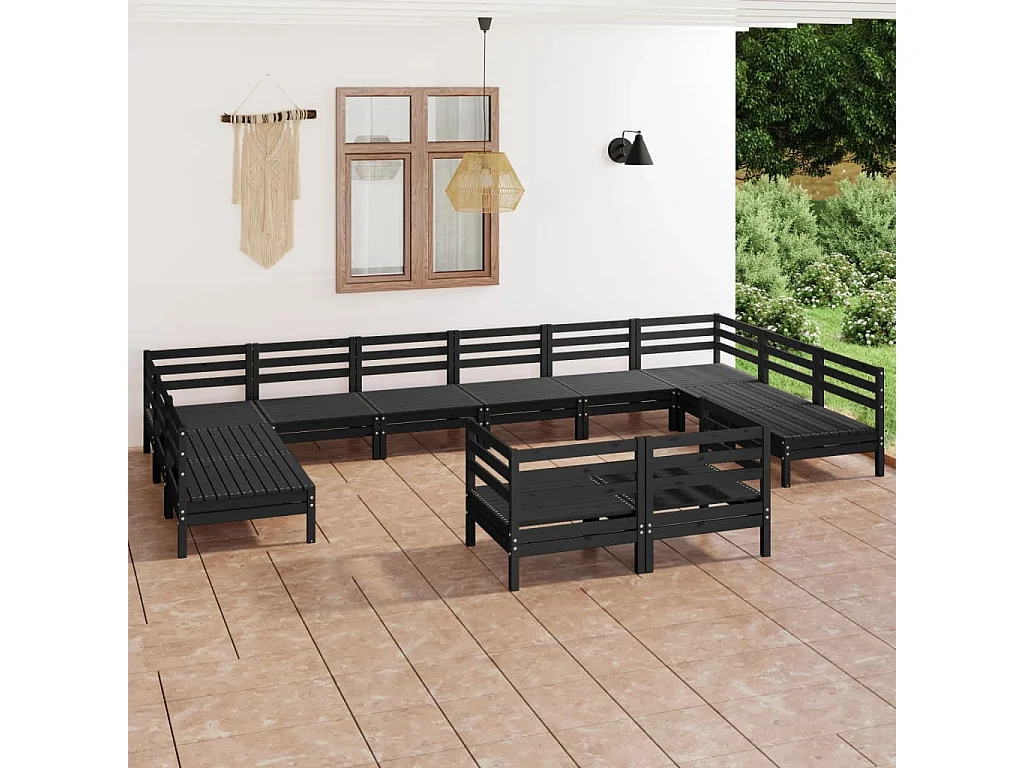 Salon de jardin 12 pièces Noir Bois de pin massif