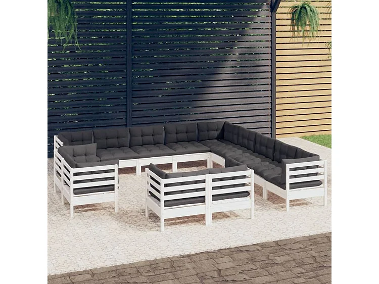 Salon de jardin 13 pcs avec coussins blanc bois de pin solide