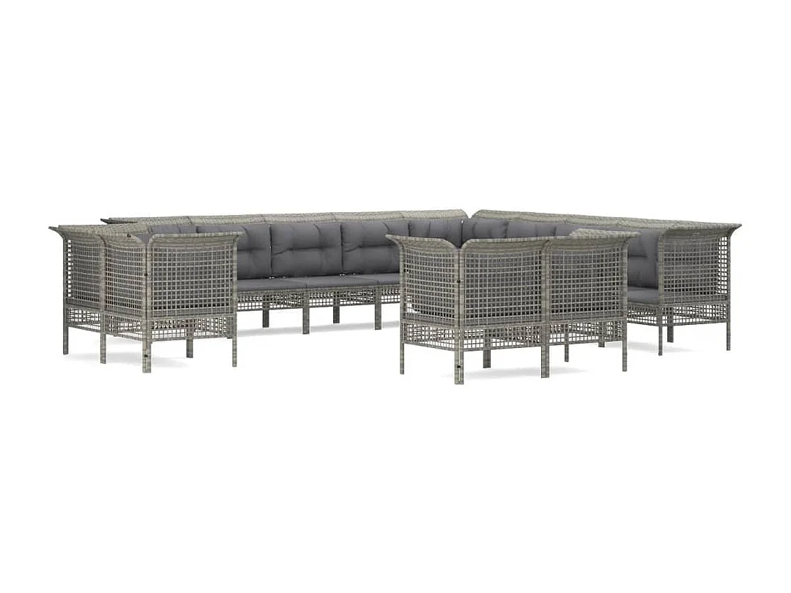 Salon de jardin 13 pièces avec coussins Gris Résine tressée