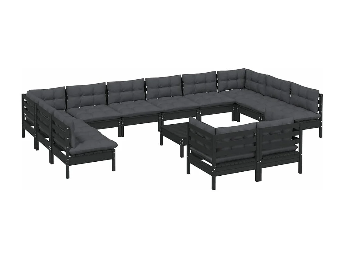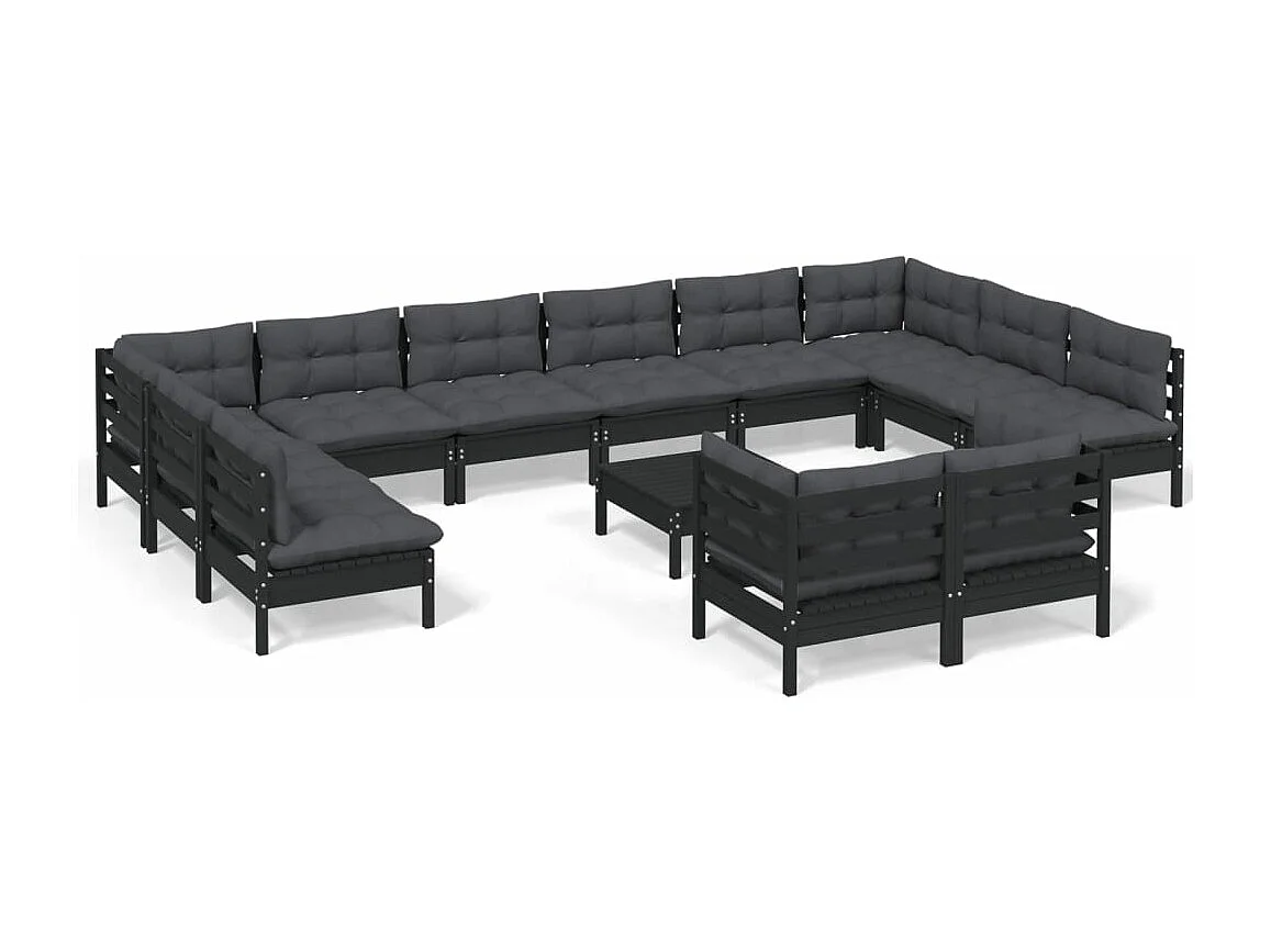 Salon de jardin 13 pièces avec coussins Noir Bois de pin