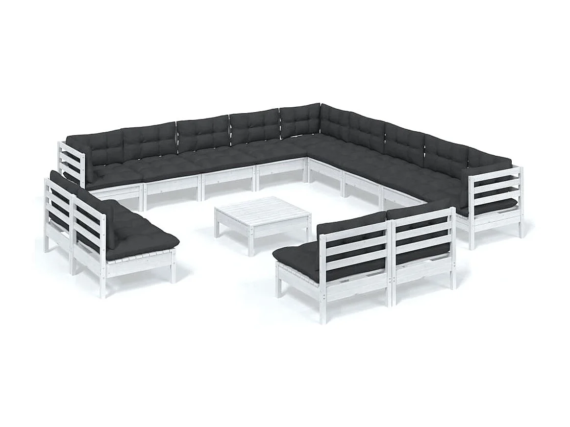 Salon de jardin 14 pcs avec coussins Blanc Bois de pin solide 2