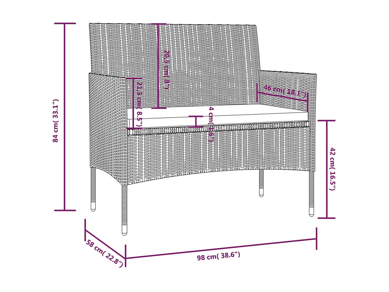 Salon de jardin 16 pcs avec coussins Résine tressée Gris