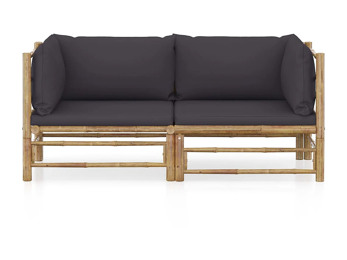Canapés de jardin 2 pcs avec coussins gris foncé Bambou