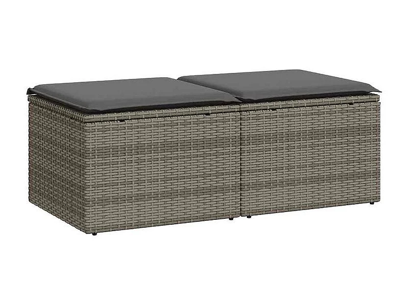 Salon de jardin 2 pcs avec coussins gris résine tressée acacia