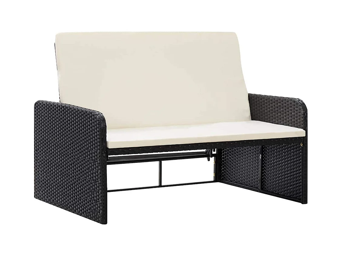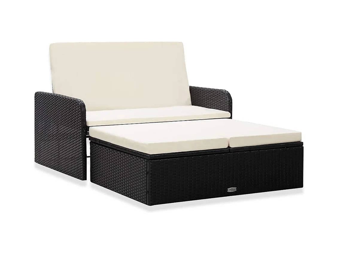 Salon de jardin 2 pcs avec coussins Résine tressée Noir