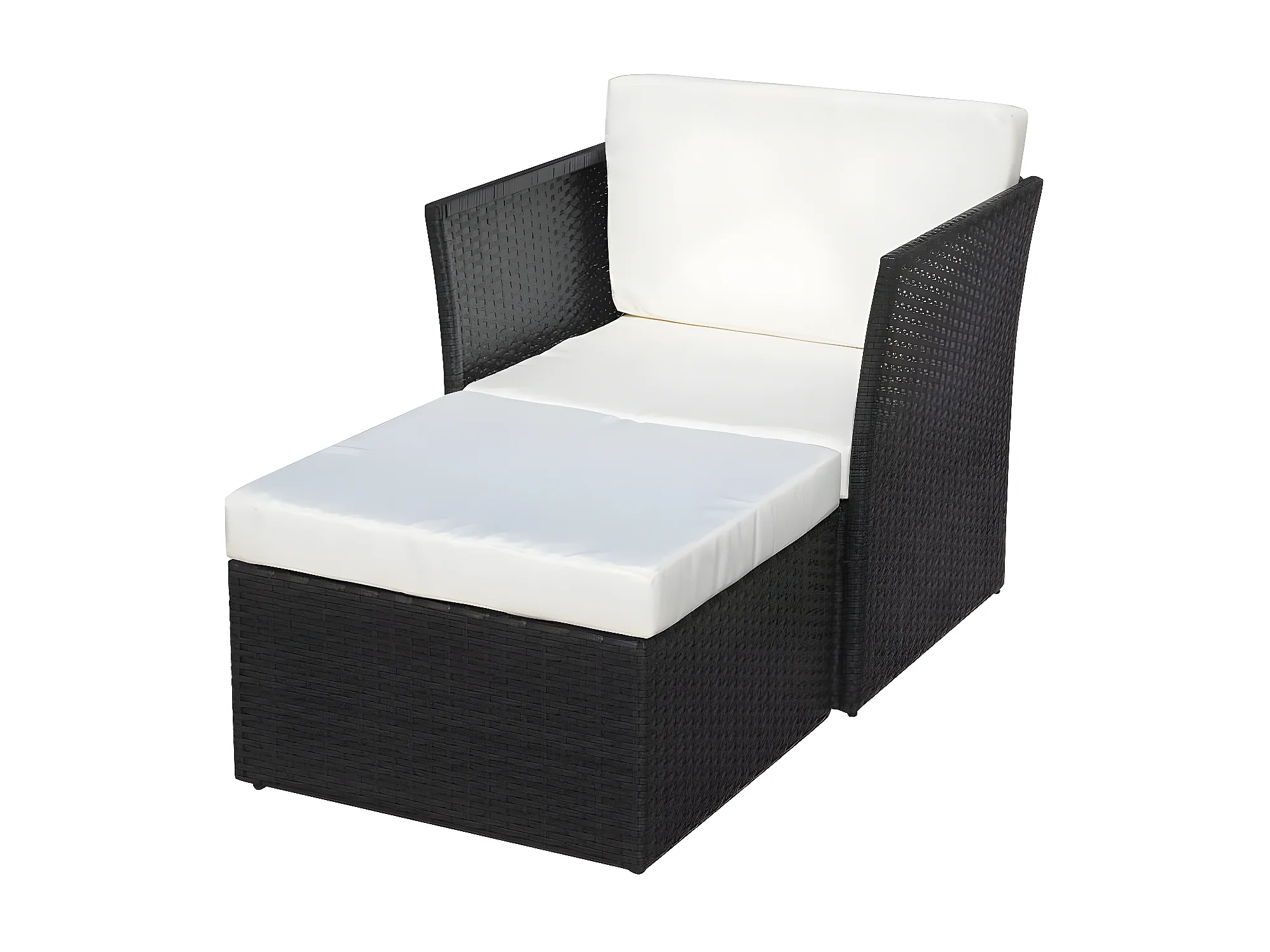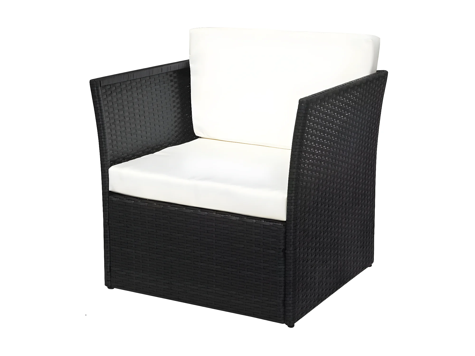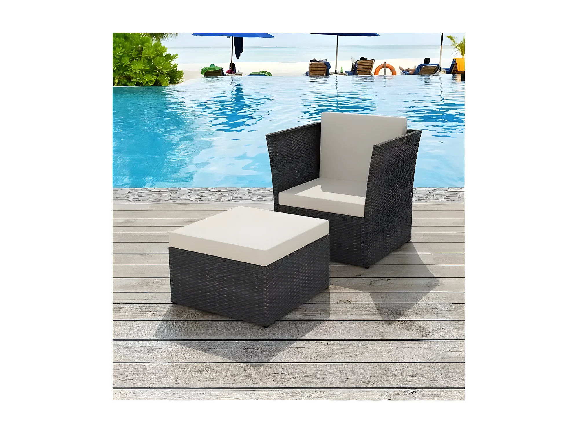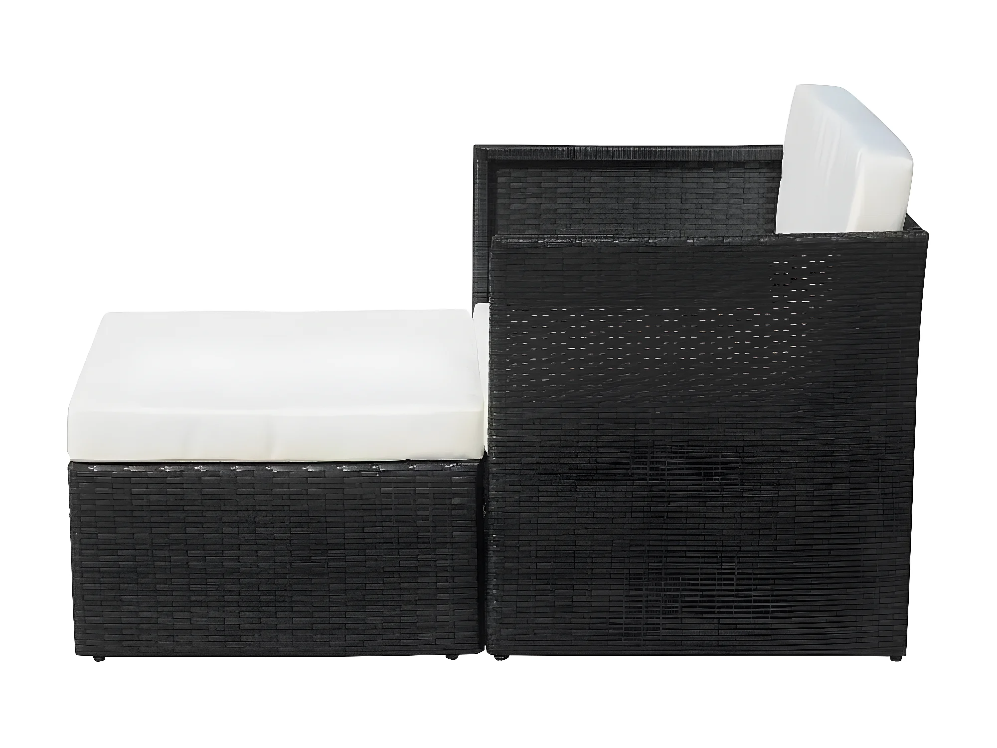Salon de jardin 2 pièces résine tressée noir coussins blanc Mik