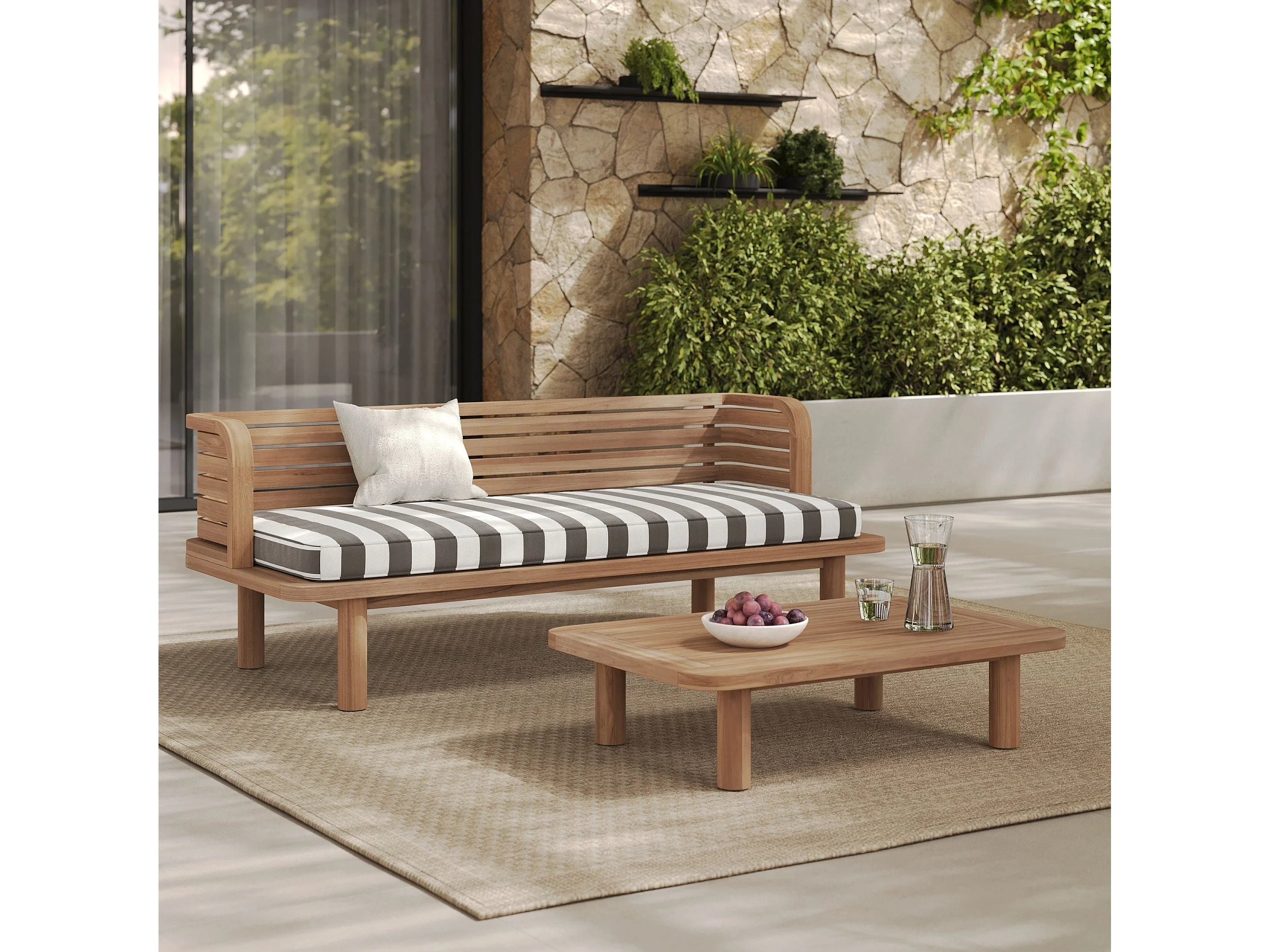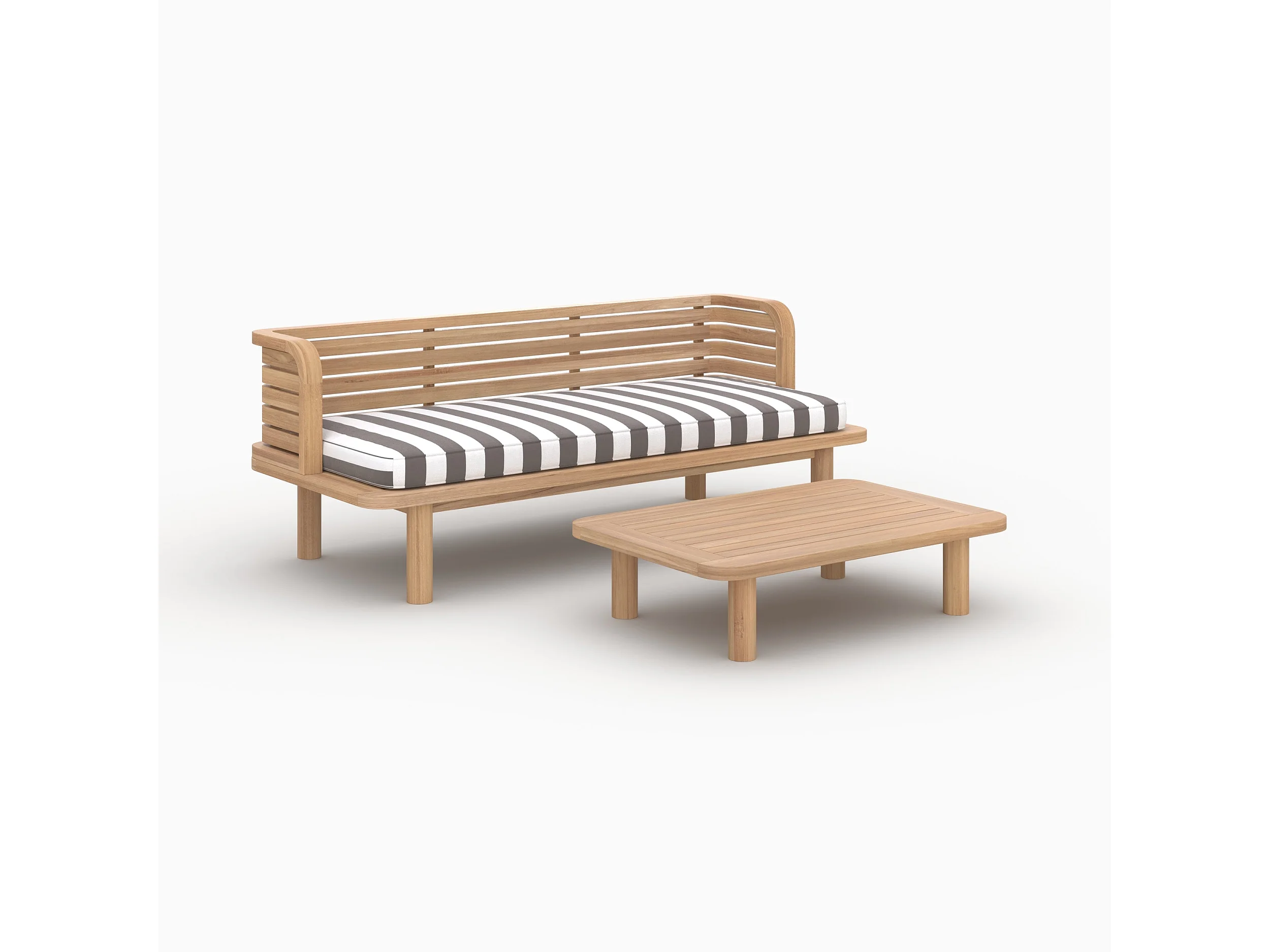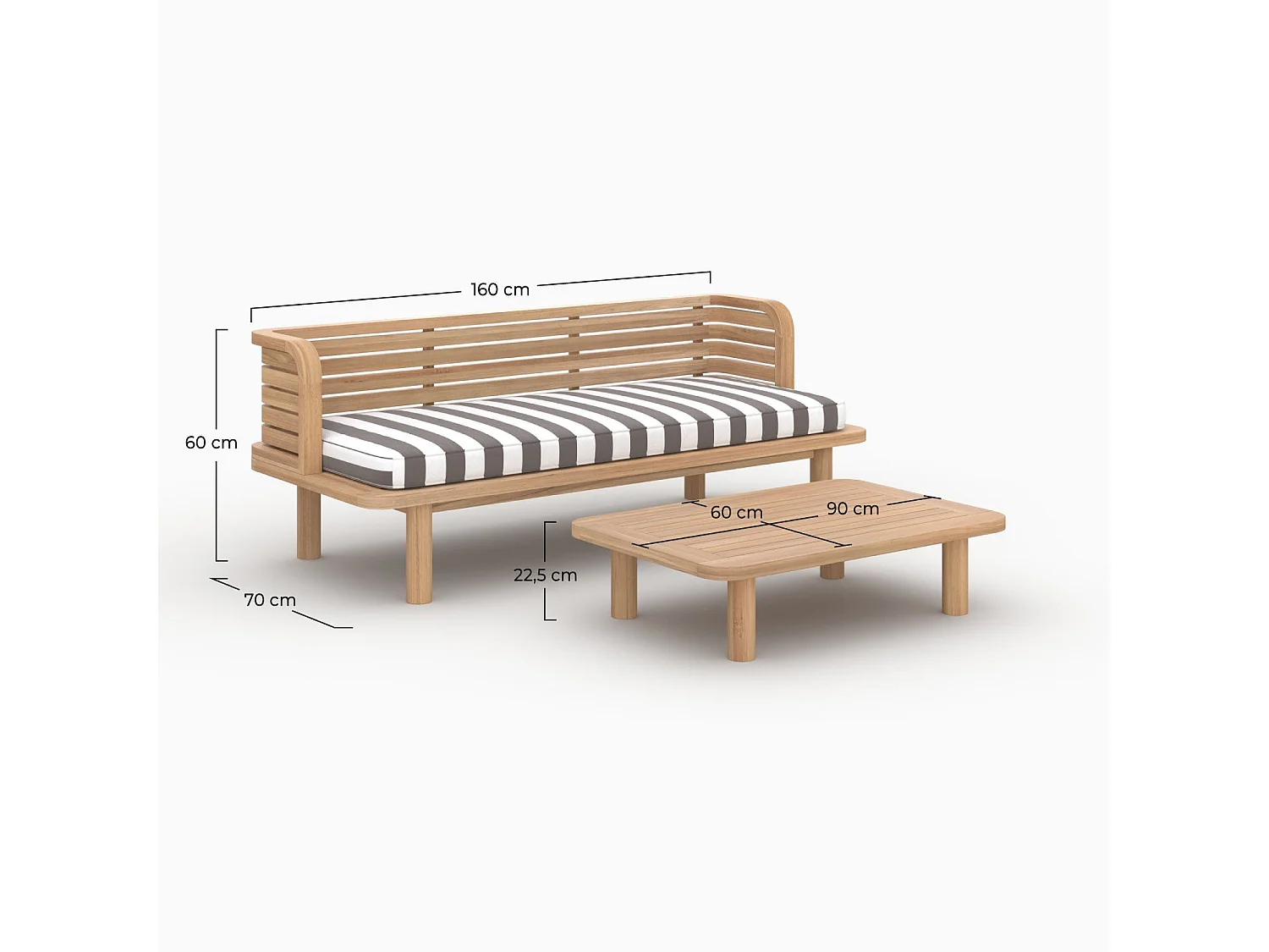 Salon de jardin 2 places en et tissu rayé gris, canapé - Kilda