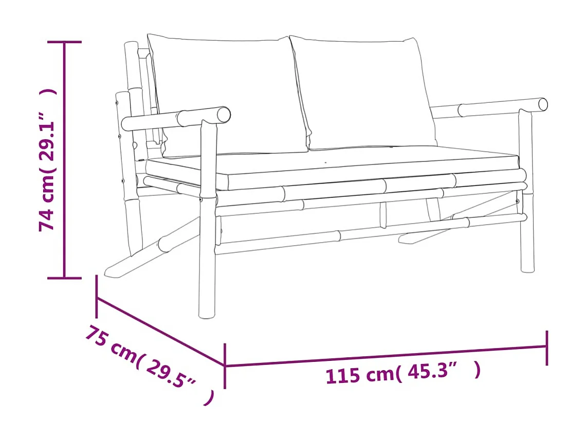 Salon de jardin 3 pcs avec coussins blanc crème bambou