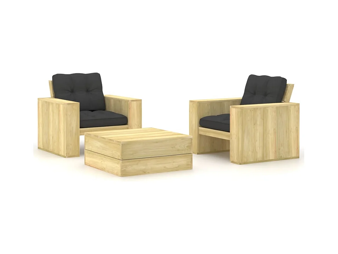 Salon de jardin 3 pcs avec coussins Bois de pin imprégné 7