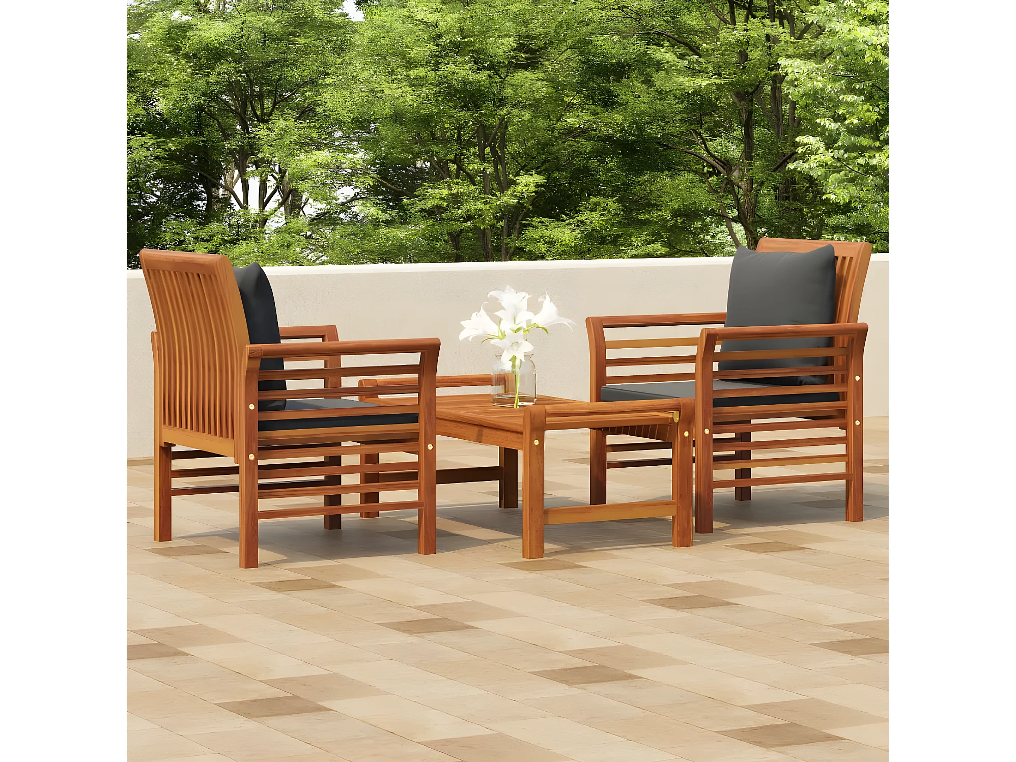 Salon de jardin 3 pcs avec coussins Bois massif d'acacia 2
