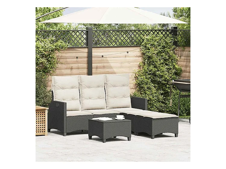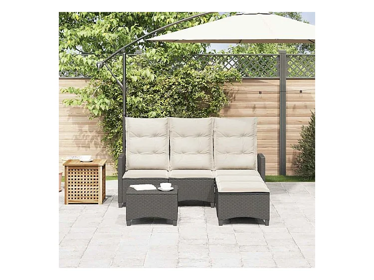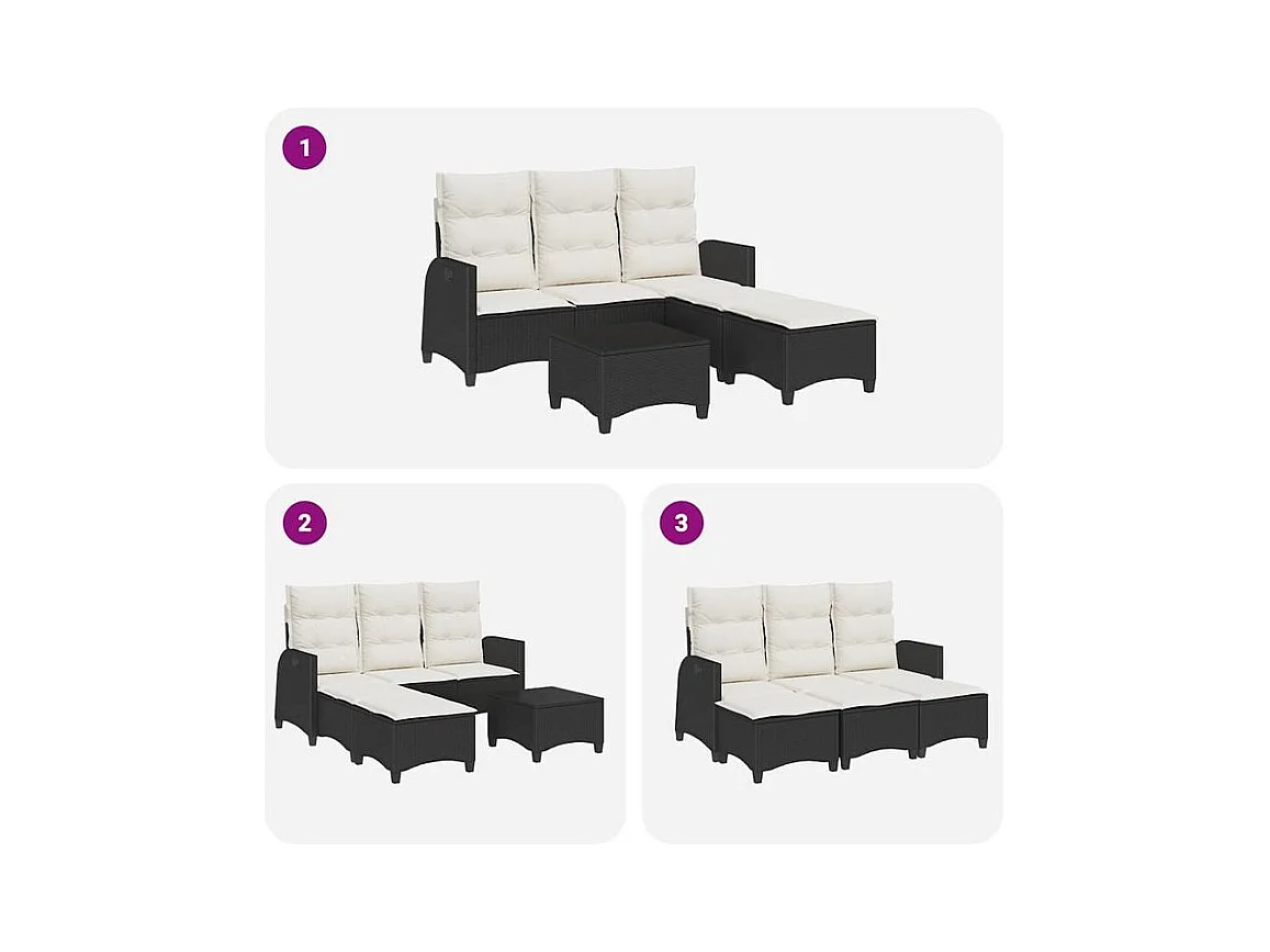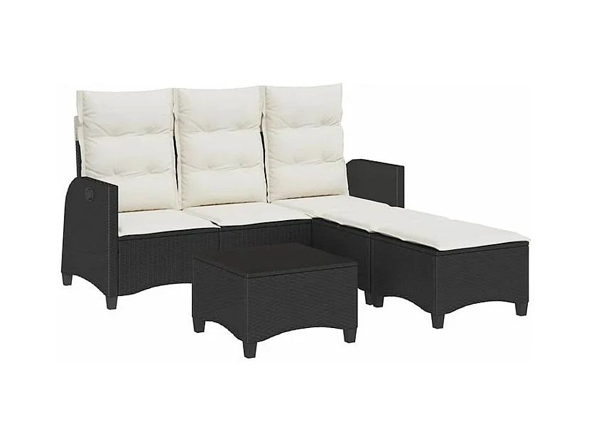Salon de jardin 3 pcs avec coussins forme L noir résine tressée
