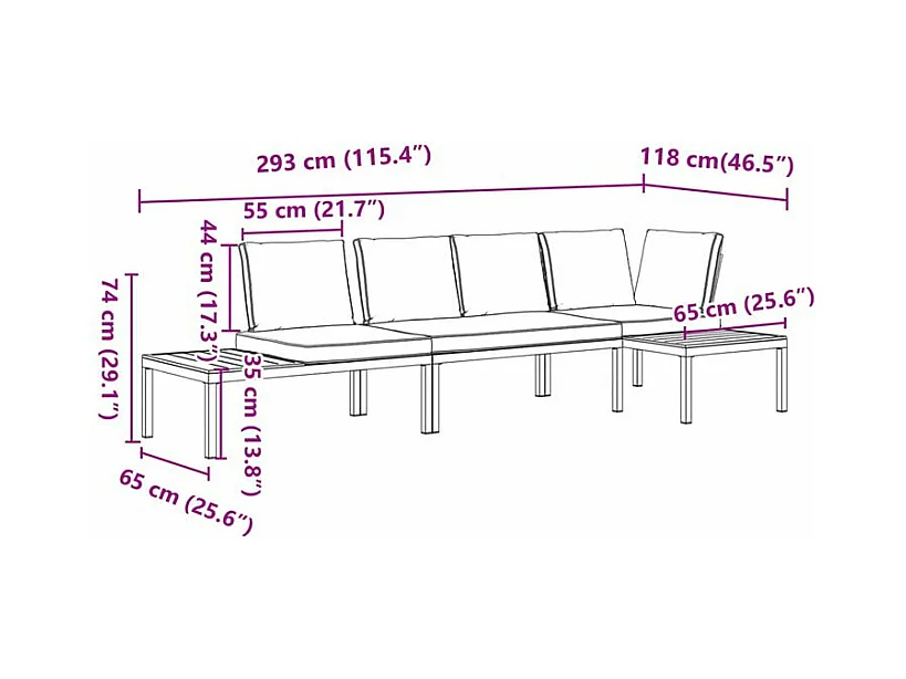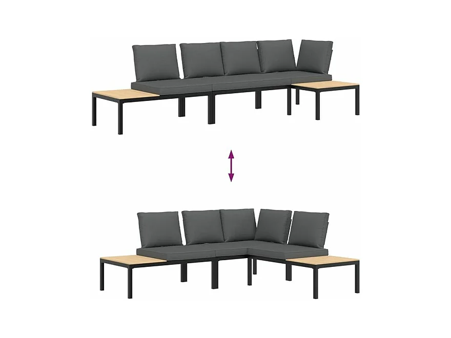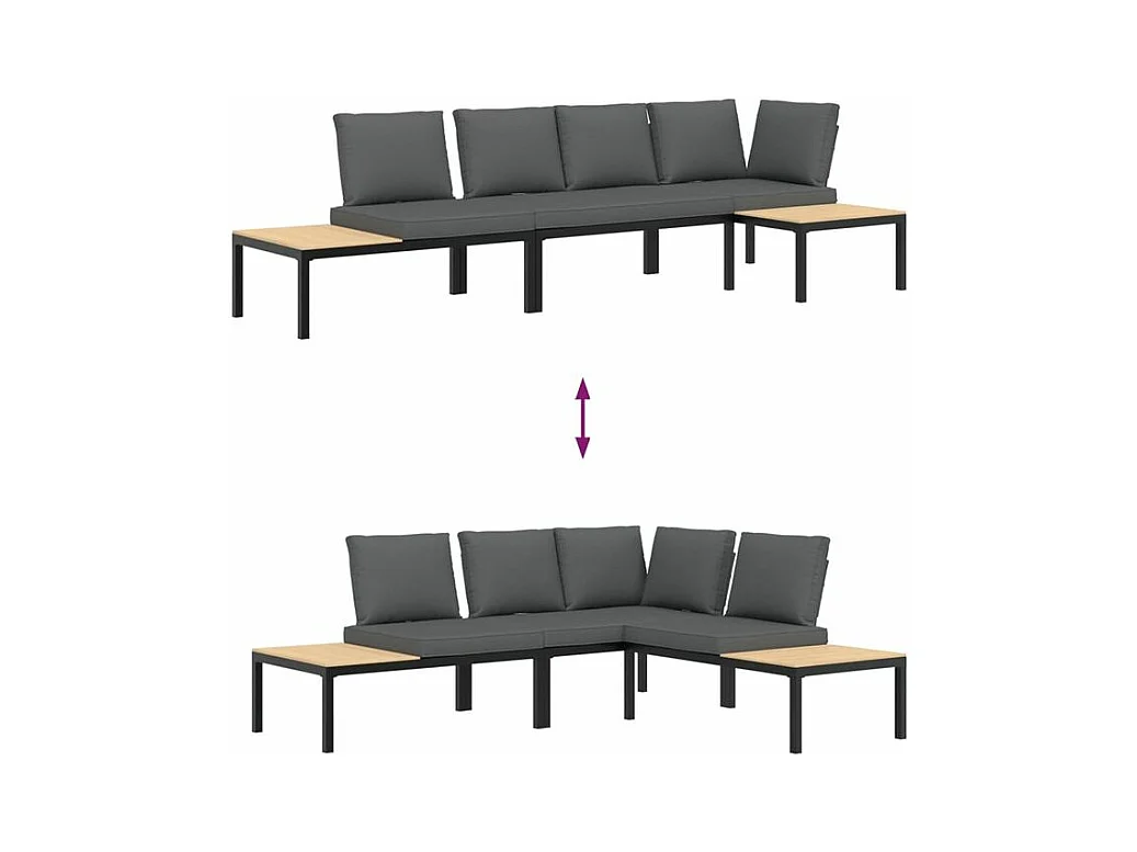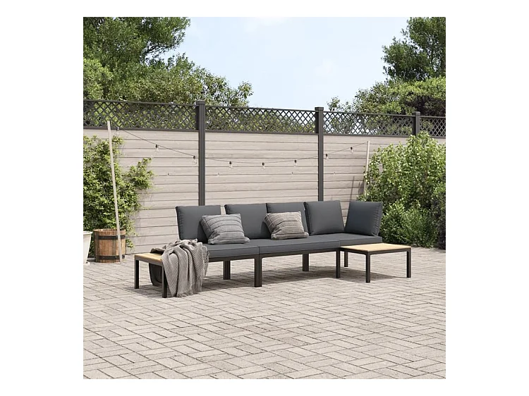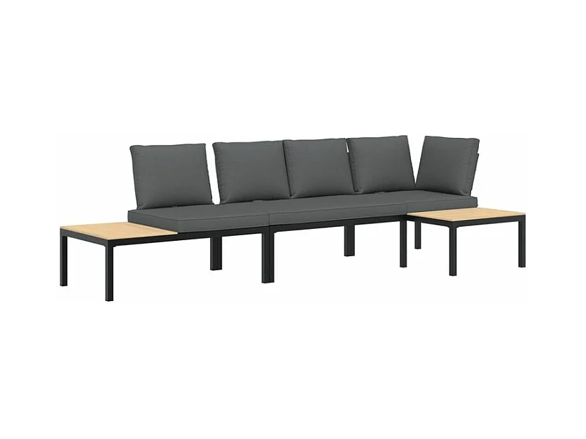 Salon de jardin 3 pcs avec coussins noir aluminium