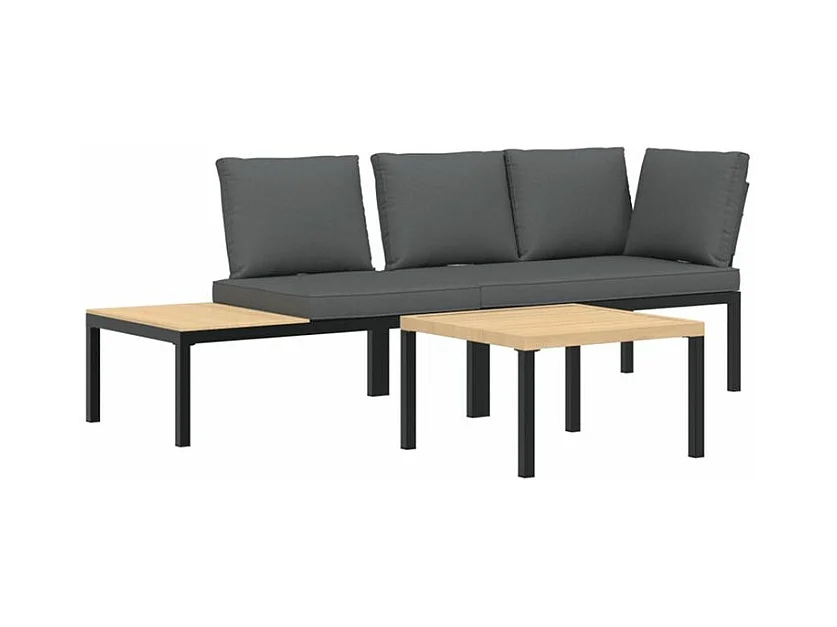 Salon de jardin 3 pcs avec coussins noir aluminium