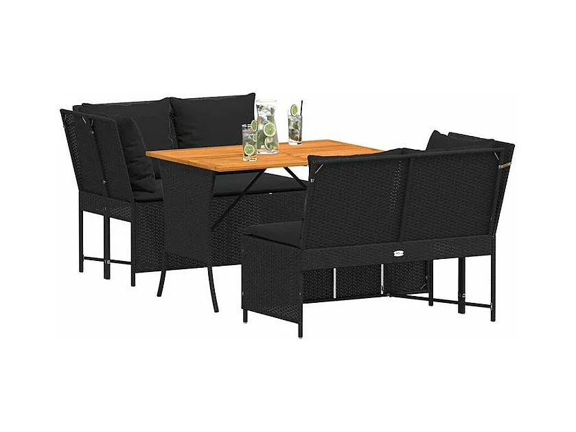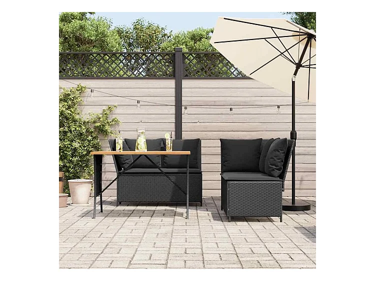 Salon de jardin 3 pcs avec coussins noir résine tressée