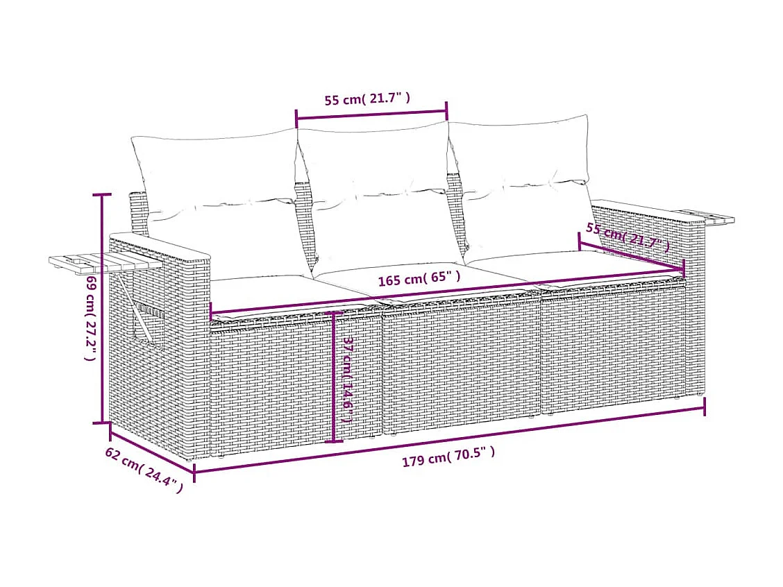 Salon de jardin 3 pcs avec coussins noir résine tressée